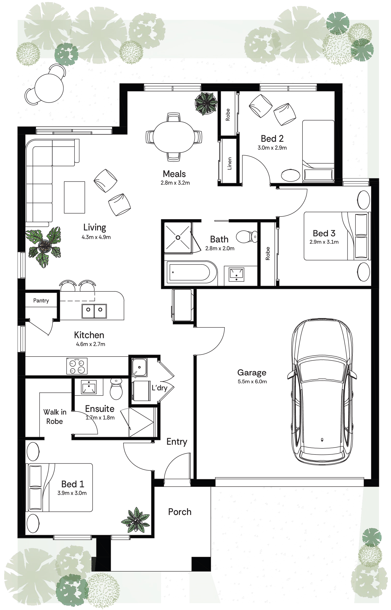 • LED downlights to all living areas