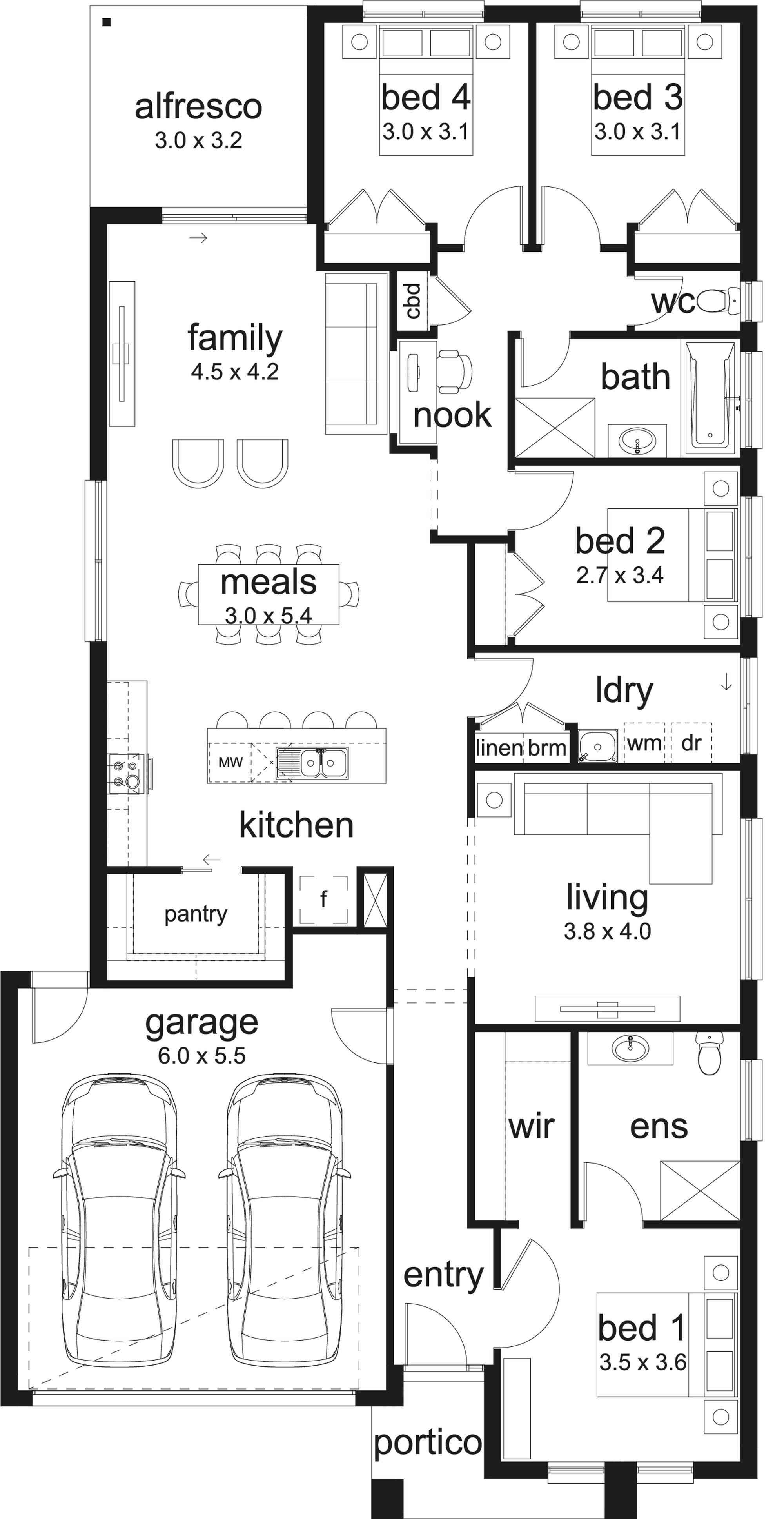 The Onyx brings modern family living to life with its open-plan design and thoughtful zoning. The large kitchen, meals and family area opens to a breezy alfresco, making it perfect for year-round entertaining. Parents will appreciate the front master suite, while the kids can enjoy their own space with nearby bedrooms and a built-in study nook?ideal for homework or creative projects.