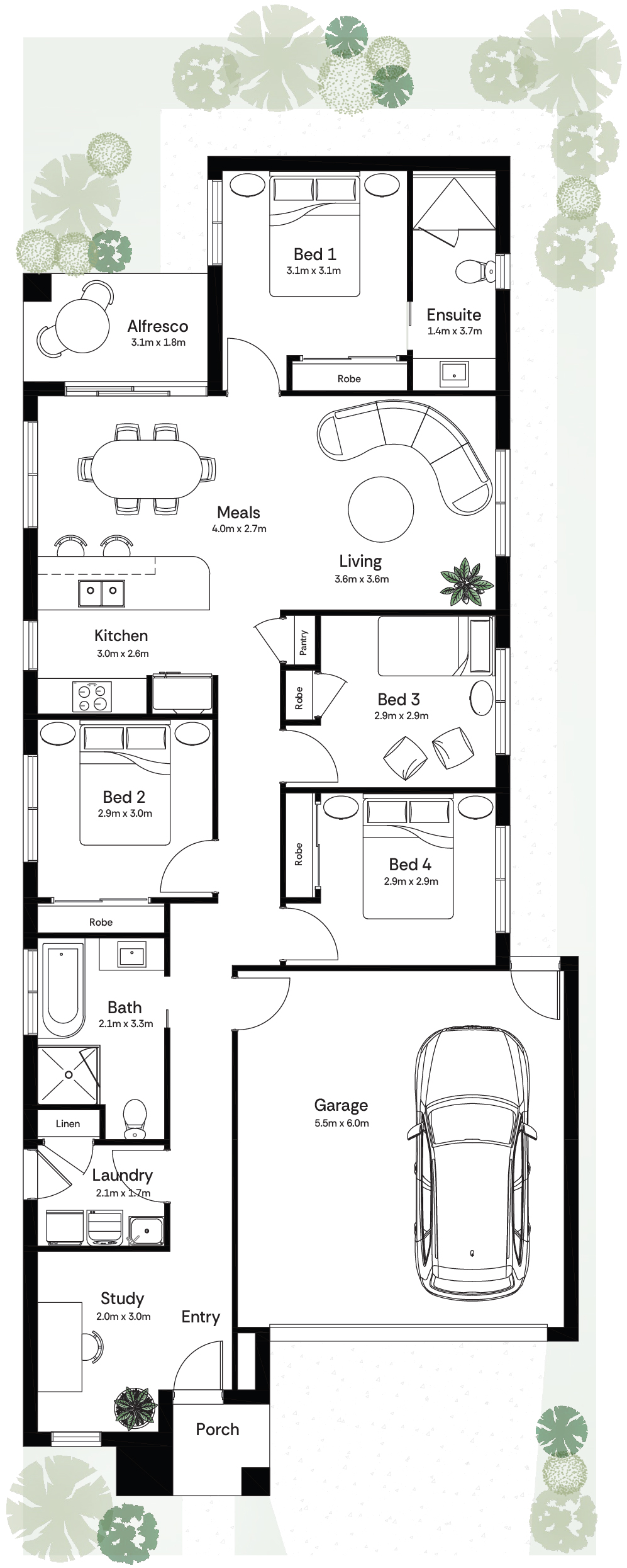 - LED downlights to all living areas
