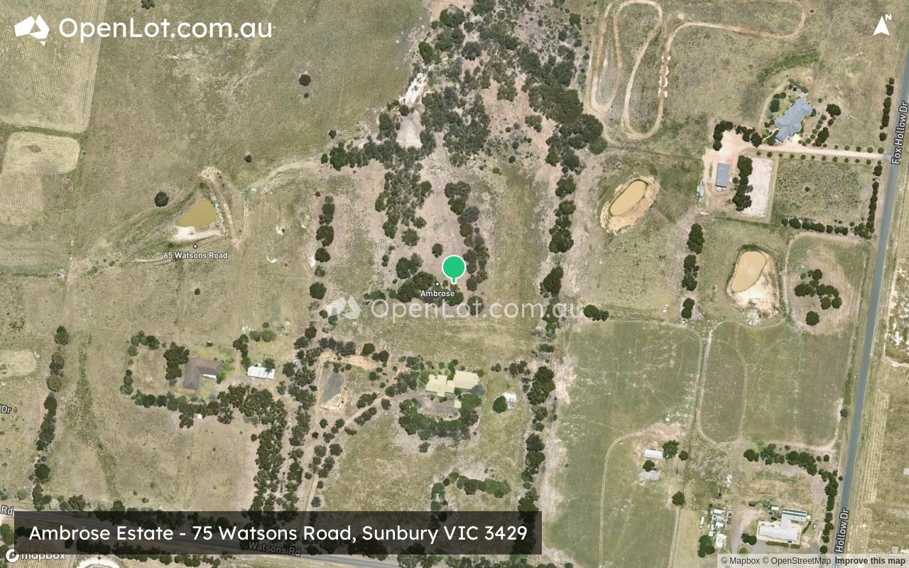 The suburb boundary is located along Jacksons Creek corridor to the North, with Emu Creek and Lancefield Road making up the eastern boundary. Watsons Road and Jacksons Creek provide the small southern boundary, with property boundaries and Calder Freeway providing the western boundary.