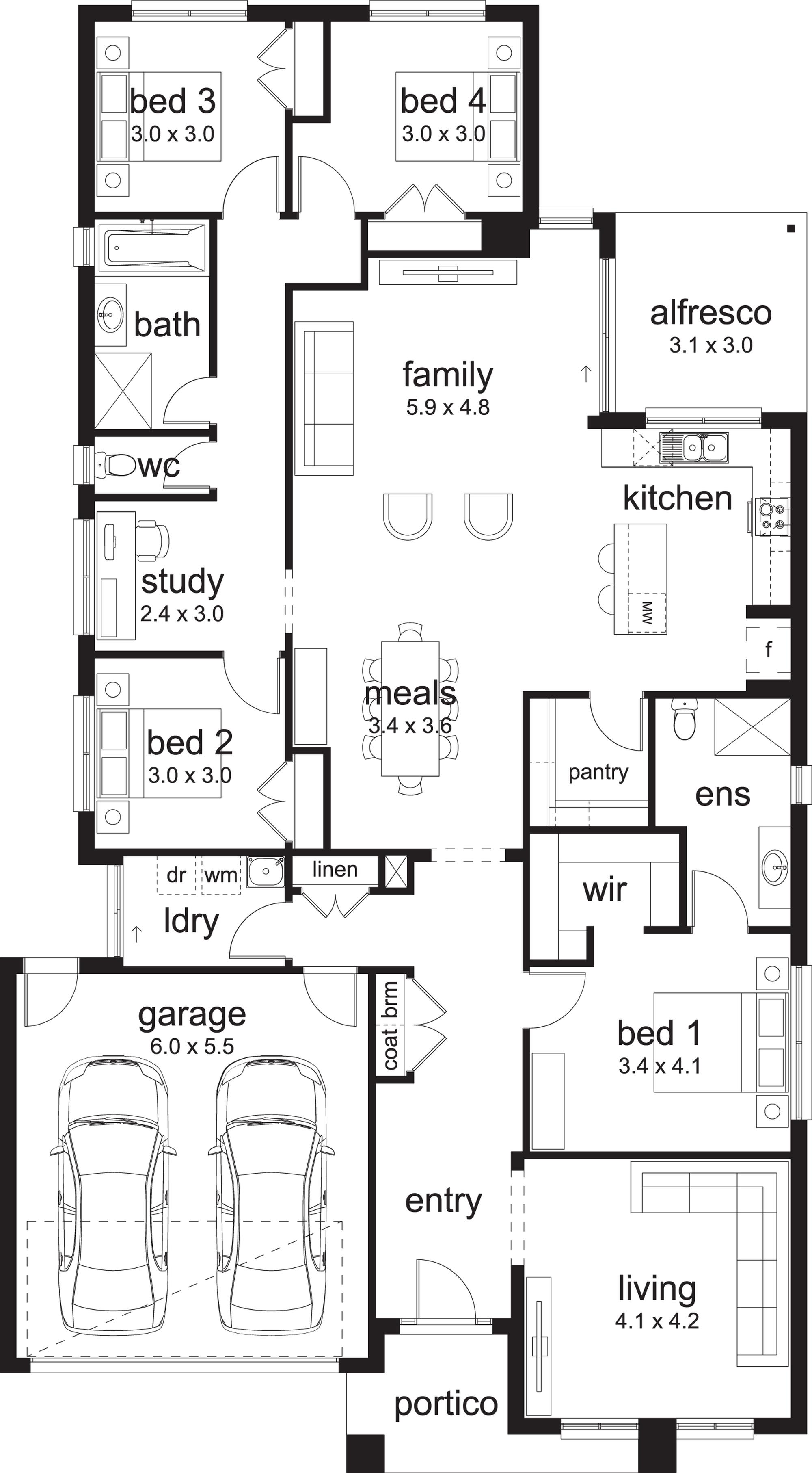 Seamless indoor-outdoor flow and a zoned layout make the Jansen perfect for entertaining.