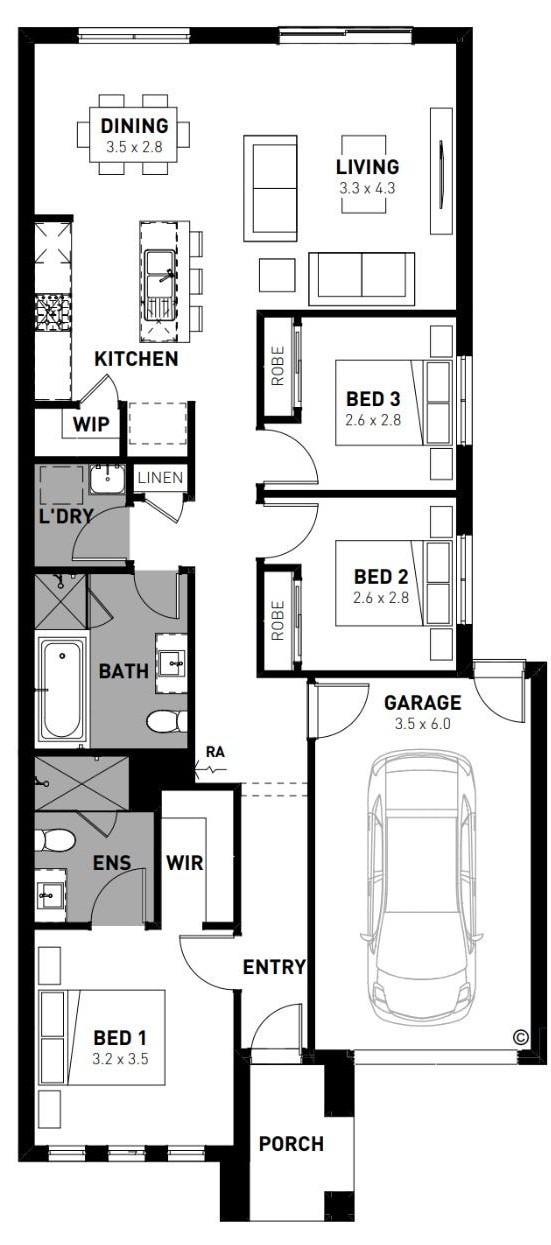All plans are protected by copyright and are owned by ABN Group (Vic) Pty Ltd. The building practitioner is ABN Group (Vic) Pty Ltd trading as Homebuyers Centre, registration number CDB-U 49215. Images are for illustrative purposes only and may depict items not supplied by Homebuyers Centre. Homebuyers Centre reserves the right to change home design measurements and design options without notice. For more information on pricing, facades or specifications, please contact your New Homes Consultant. All information contained within this document is accurate at time of printing (August 2023). #Inclusions listed in this document are not exhaustive. For a complete list of inclusions, please contact your New Homes Consultant and refer to your HIA New Homes Contract. ^Homebuyers Centre is responsible for providing the connection point only. It is the owner's responsibility to arrange for connection services (gas, NBN, water, etc.).