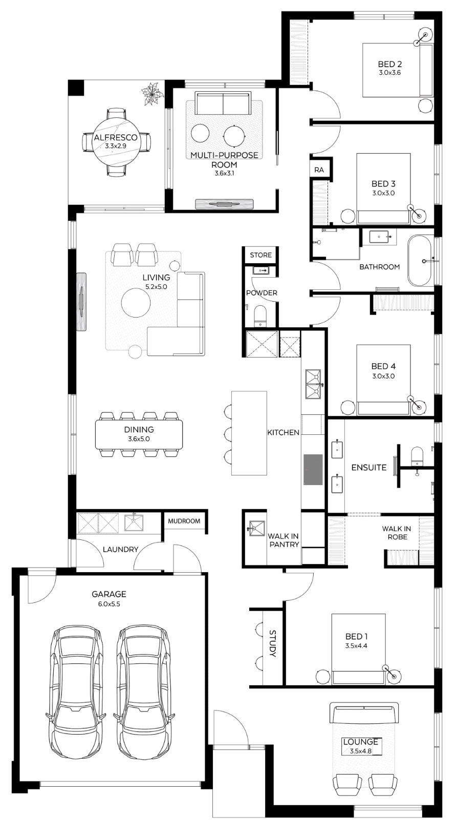 A separate lounge and multi purpose room provides additional living zones that can be utilised at any time of the day.