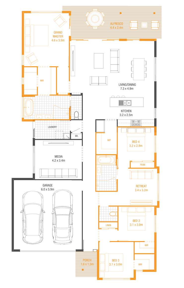 Introducing the Foster, a harmonious blend of opulence and functionality designed to elevate your living experience. This residence features a luxurious master suite and expansive living and kitchen areas, meticulously crafted to serve as the heart of your home. Entertain effortlessly in the open-plan living space that seamlessly extends to the rear yard, fostering a perfect connection between indoor and outdoor realms.