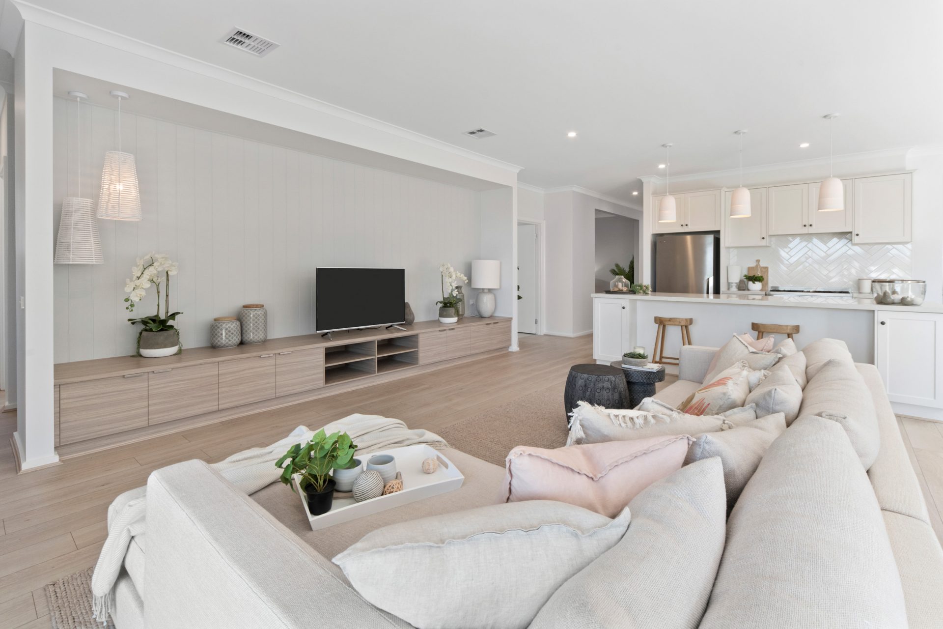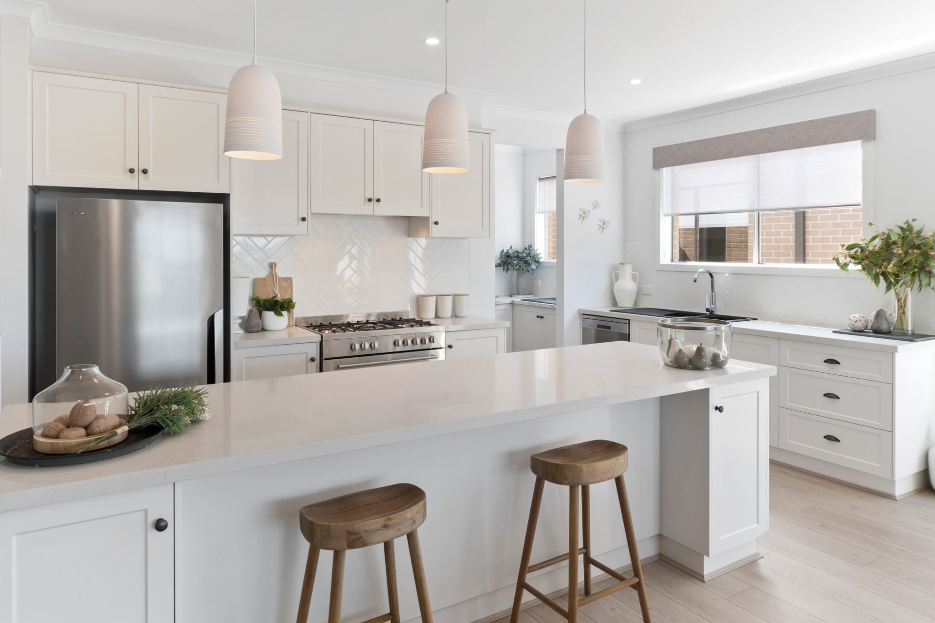 The standout feature of this four bedroom beauty is the centrally located hostess kitchen with walk in pantry. If the kitchen is the heart of the home, then get ready to fall in love with The Mason 28. The breakfast bar and island bench, stainless steel appliances and open-plan design flowing through to the living and meals area, make this kitchen the natural family hub.