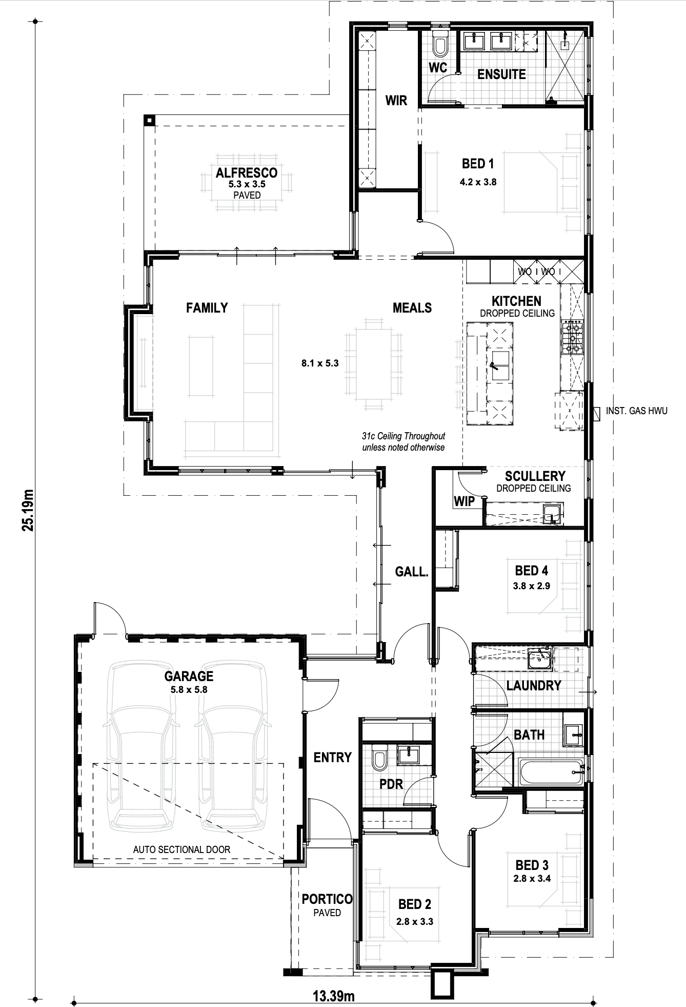 This spectacular four-bedroom, two-bathroom home will have you feeling relaxed from the moment you walk in. With high 31c ceilings throughout and an open-plan family, meals and kitchen area, The Kinmore is the ultimate family home.