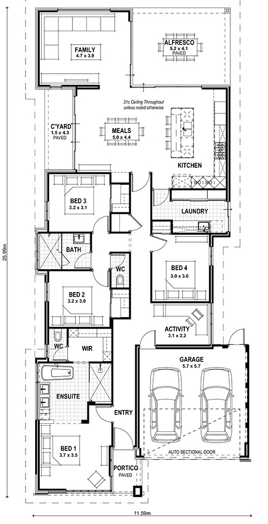 With its modern look and family-friendly design, The Selacosa is the perfect combination of style and functionality. This elegant four-bedroom, two-bathroom home boasts high 31c ceilings, bringing a sense of grandeur to every room.
