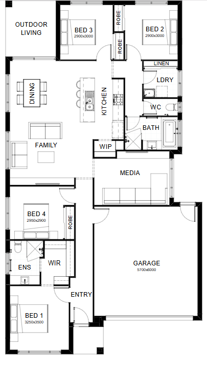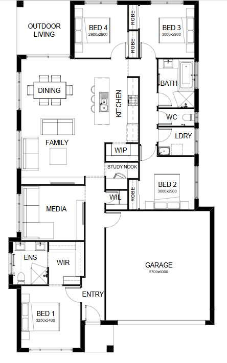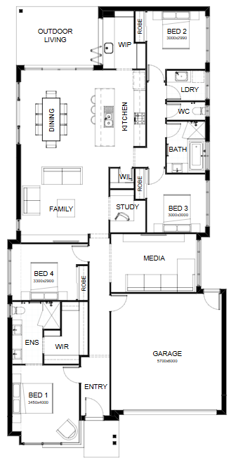 Introducing a floor plan that’s supremely inviting! This 4 bedroom home expertly ticks all the boxes – including an integrated family room, dining space and open kitchen, opening directly onto an outdoor living area that’s perfect for entertaining. There’s also a separate media room, a study nook and a spacious master suite complete with a generously-sized walk-in robe. Contact us today to customise the Avery home to you!