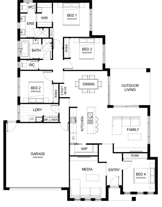 There’s room for everyone in this four bedroom home. Open plan living allows for the kitchen, dining/living to flow onto the outdoor entertaining area. There’s also a butler’s pantry, separate media room and the parents’ master suite includes an ensuite and large walk-in robe. Contact us today to customise the Falcon home to you!