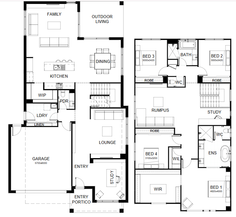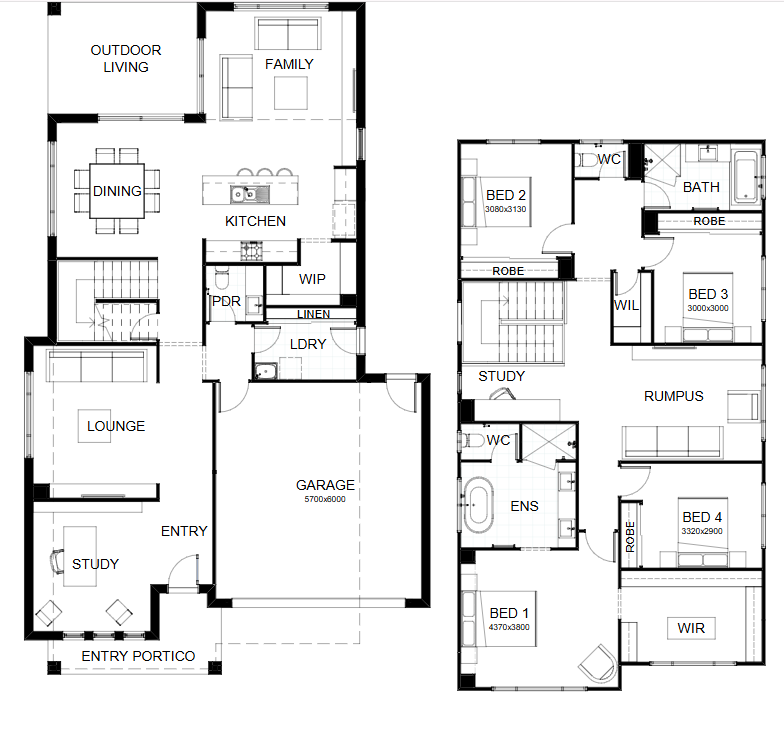 This dazzling 4 bedroom design showcases multiple living spaces ideal for both family fun and private moments, an upstairs rumpus room the kids can call their own, a master suite with a huge walk-in robe, and study areas on both levels. At the heart of it all, the entertainer’s kitchen is the hub around which the dining room, family room and outdoor living area are gathered. Contact us today to customise the Lennox home to you!