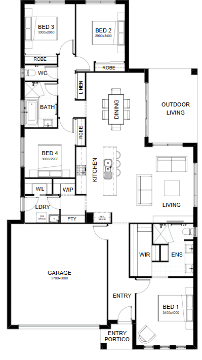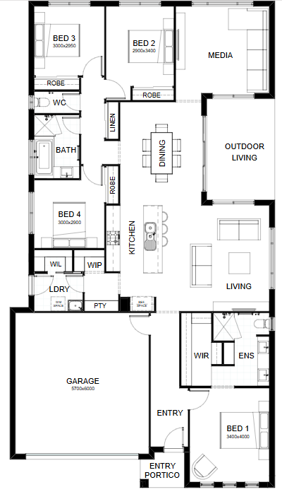 Family living is the focus in this cleverly-executed, spacious one level design. Features comprise four bedrooms, including a master suite with walk-in robe, separately zoned children’s rooms and their own retreat area, plus a large media room and a study. The open plan living, kitchen and dining link directly with an inviting outdoor entertaining space. Contact us today to customise the Newport home to you!