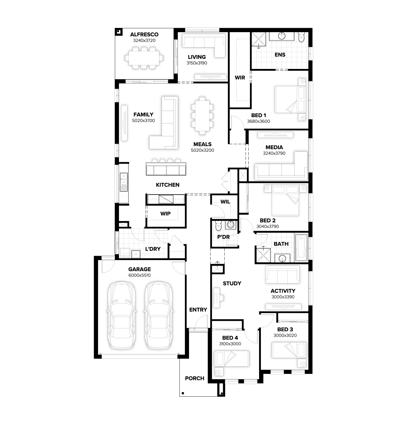 Our Conway design is a traditional family home. Perfectly zoned, the front of the home is dedicated to the kids with three sizable bedrooms, study and an activity room. This allows the parents to escape to their private oasis towards the back of the home complete with a separate living space. This design has multiple kitchen options providing flexibility to create a kitchen that best suits your families lifestyle.