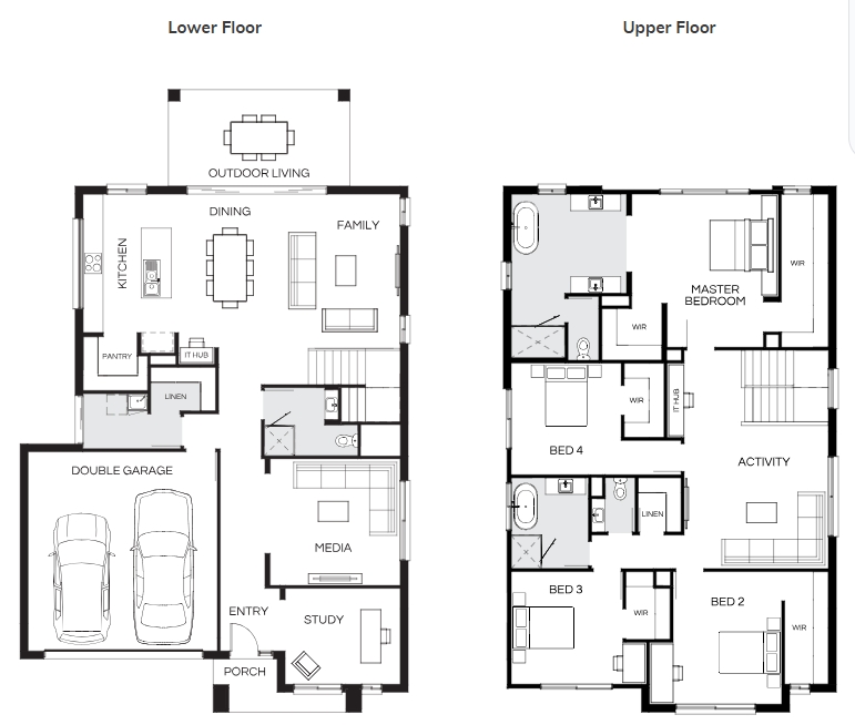 The beautiful Bentley Series is designed with families in mind. This double storey floorplan seamlessly flows from inside to outside, with the open-plan living area opening onto the alfresco. The Bentley has four bedrooms – each with walk-in robes – and three main living spaces, including a media room, family room and upstairs retreat.