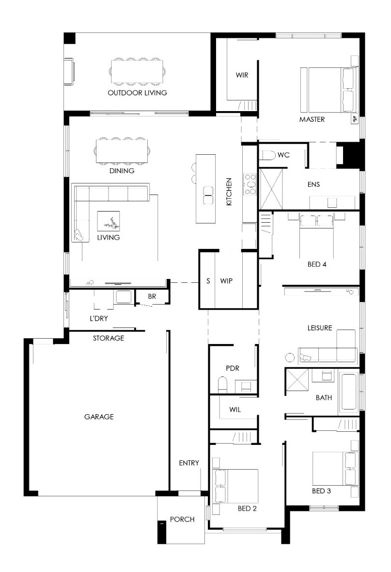 At the heart of the home, an open-plan kitchen, dining and living space flows effortlessly to the expansive wraparound outdoor living area – perfect for entertaining or soaking up the sunshine.