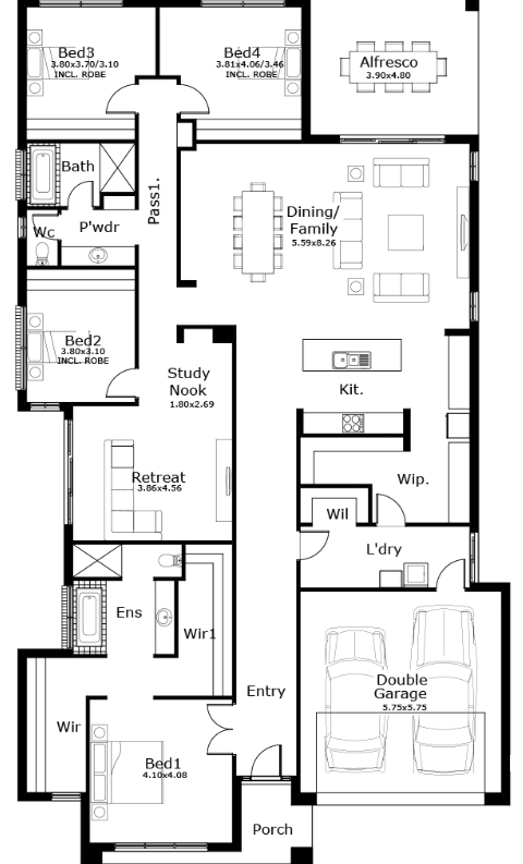 The four-bedroom home offers an open plan kitchen, dining and family area including a large walk-in pantry with plenty of storage. A great feature of this home is the luxurious master suite with his & hers walk-in robes and spacious ensuite. The alfresco, retreat and study nook also provide useful additional space, ideal for large families.