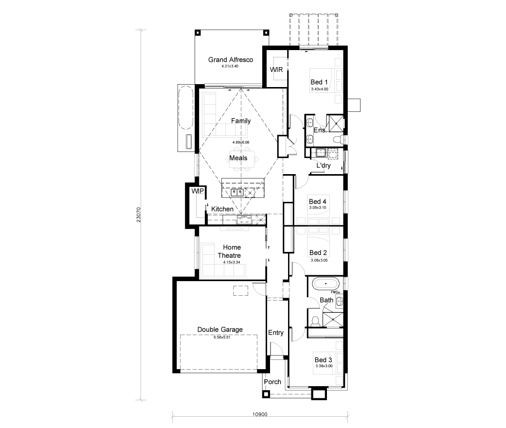 Featuring two living areas, this home is great for both entertaining and providing space for downtime, with the option to turn the second living room into a home theatre. The guest room with an ensuite is a great option for families who love to host extended family relatives. Having the alternate kitchen design means this home can be customised to suit your needs, maximising natural light and space. With a clever use of space having minimal hallways and open living, the Sohar 25 is simple, yet everything you could want in a family home.