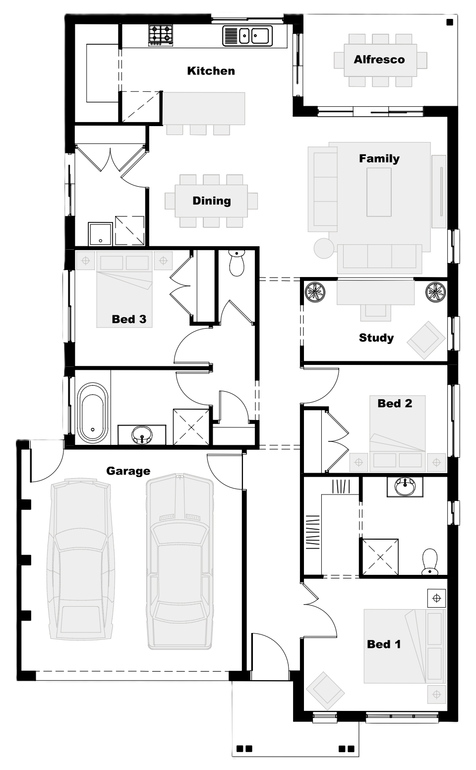 - Plain concrete to alfresco (where applicable)