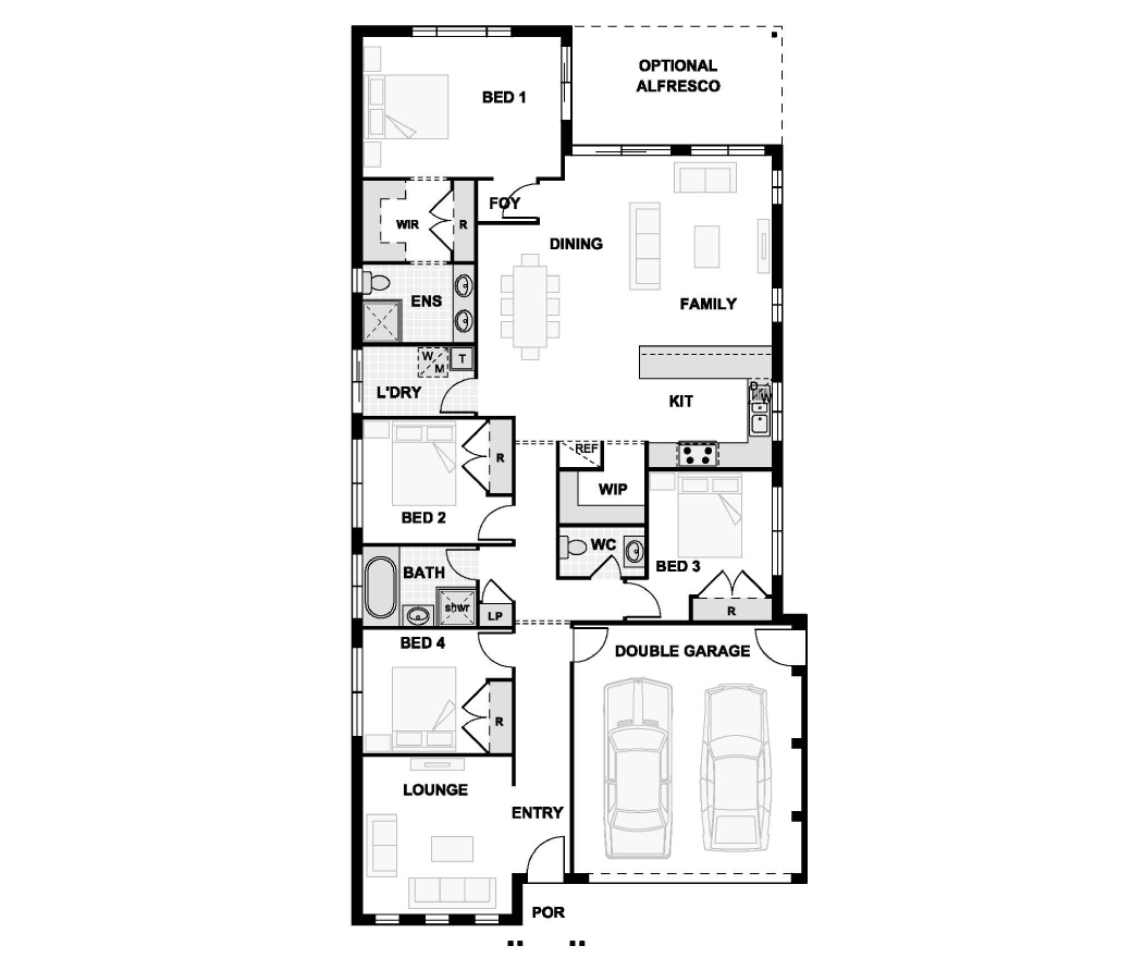 - Plain concrete to alfresco (where applicable)
