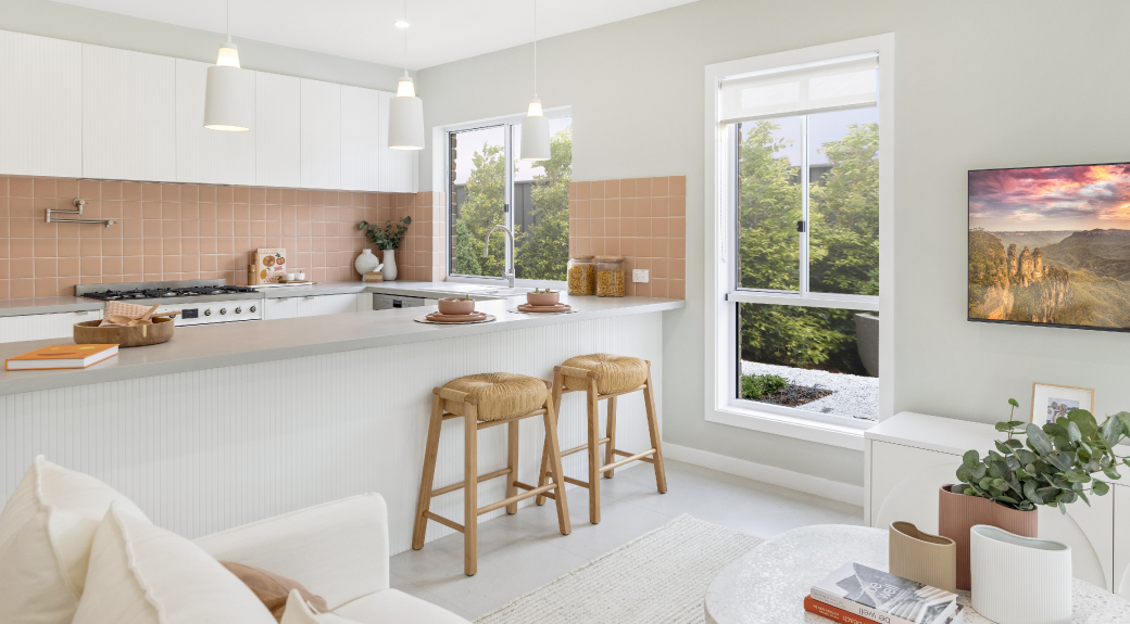 Set on a 500m² block, this single-storey Hamptons-inspired home by Eden Brae offers 4 bedrooms, 4 bathrooms, and a double garage. The design balances shared family spaces with private retreats. It features a separate lounge for a second living room or home theatre, a kids’ retreat between bedrooms 2, 3, and 4, plus an open-plan kitchen, dining, and living area that flows to the alfresco.