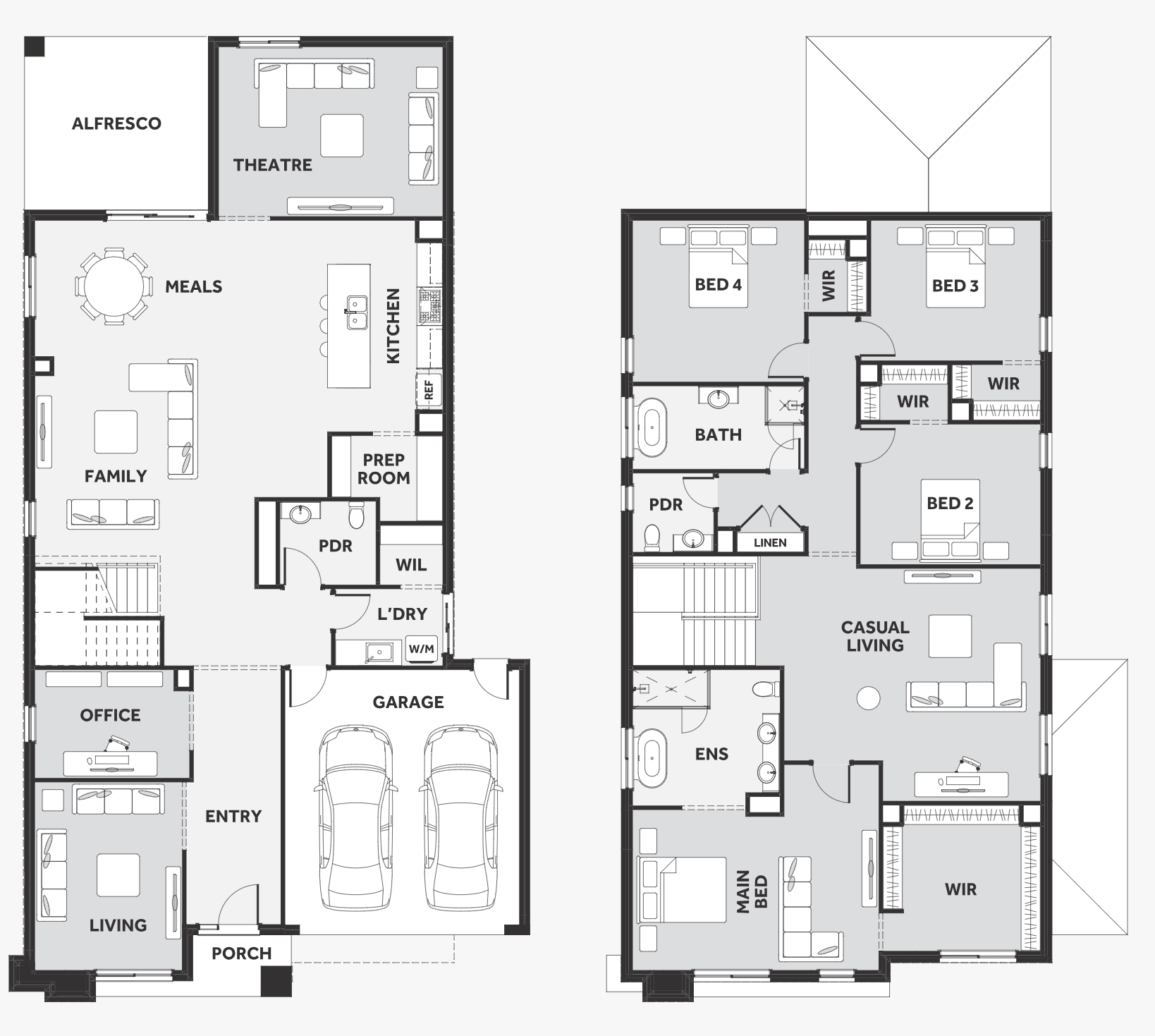 The Maisa double-storey design is envisioned for families wanting more from their family home. The ground floor is dedicated to rest and relaxation, offering an inviting open-plan meals, family and kitchen area that seamlessly integrates with the alfresco. The kitchen features a vast island bench that conveniently doubles as a breakfast bar.