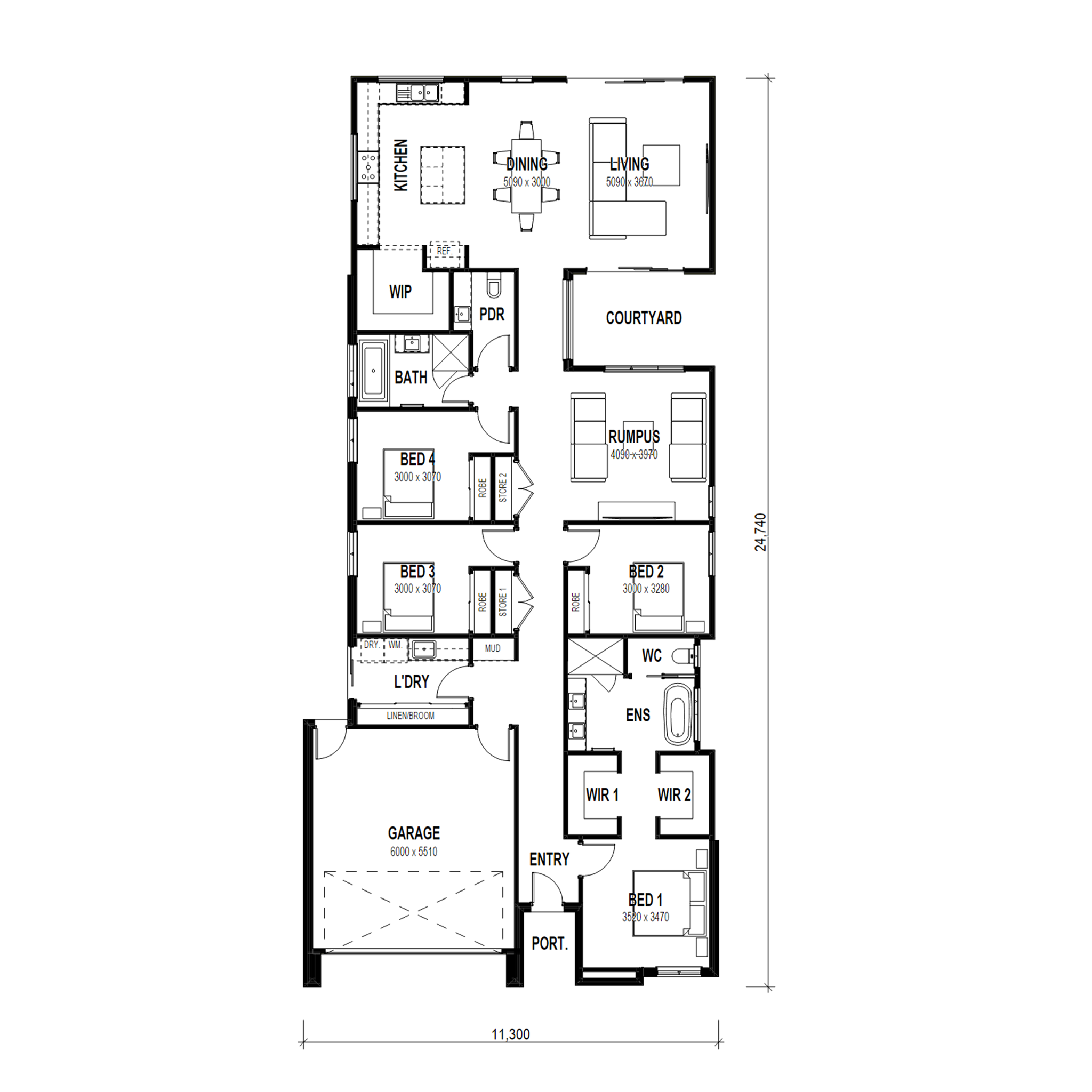 A home that celebrates the blend of contemporary style and family living. The modern flat-roofed rear opens the kitchen, living, and dining areas to the backyard, while a private courtyard separates the main living zone from the rest of the home. With four bedrooms, two living areas, a generous walk-in pantry, and a luxe master ensuite featuring his-and-hers robes, a bath, large shower, and double vanity, The Fusion is designed for modern entertaining and practical everyday living.