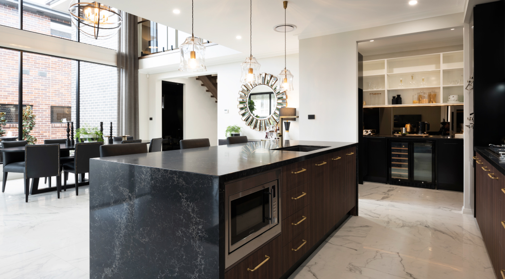 The Grantham 37.5 Distinct features a huge modern kitchen with spacious butler’s pantry as a central feature of the home blended seamlessly with the light filled living space to the rear of the home thanks to the grand void and extended alfresco.