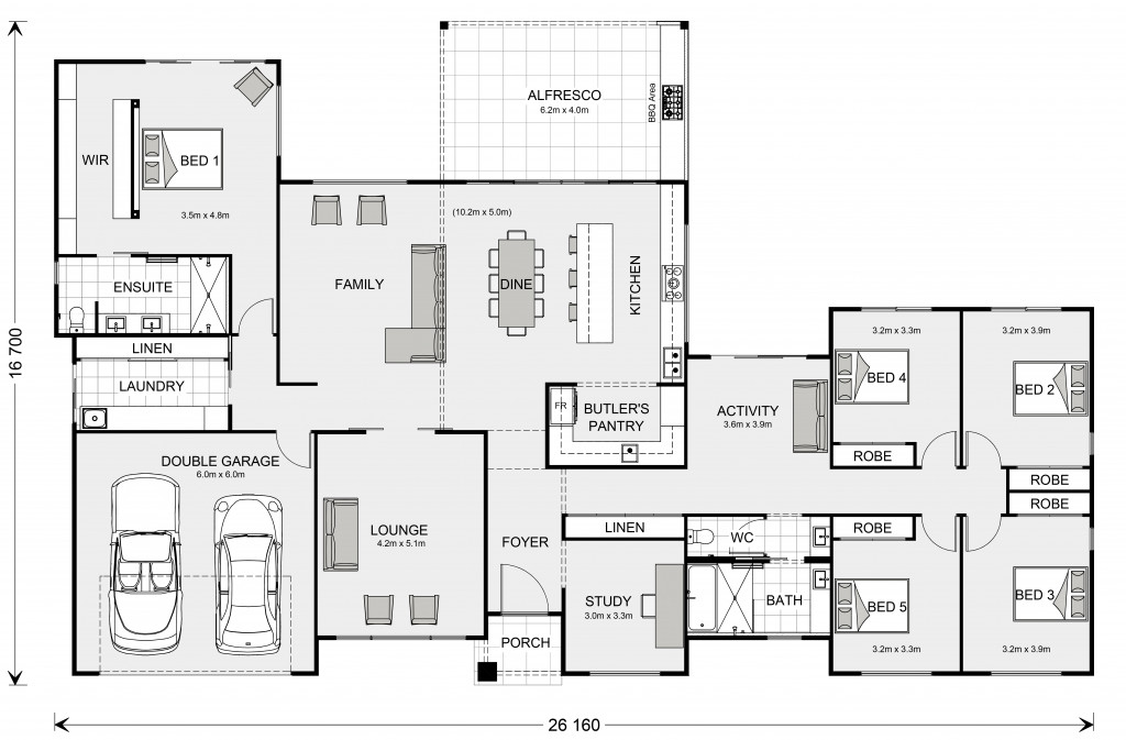Three distinct and separate living areas will cater nicely to the busiest of family’s while being cleverly designed to afford all the members of the household with privacy.