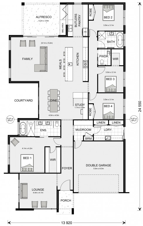 Extra features compliment the design with the inclusion of a study or mudroom making the Millbrook an ideal place for any family to call home.