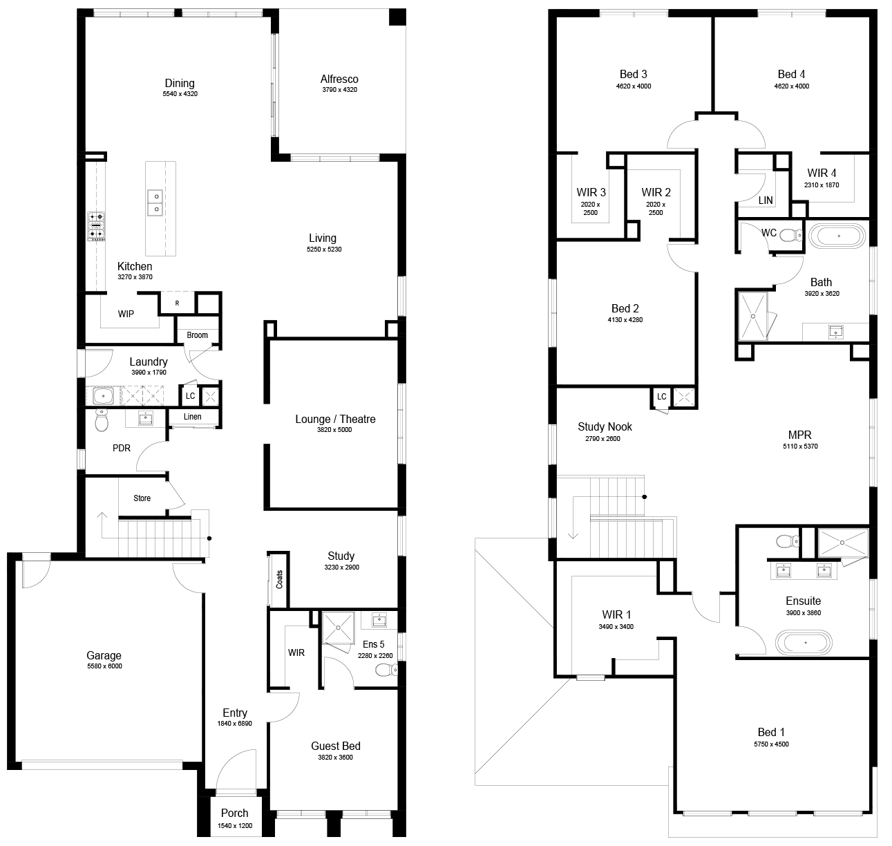 Downstairs, expansive living, dining and kitchen zones are complemented by additional spaces such as a dedicated study, wine store, and butler’s pantry (available in select configurations). Oversized windows and seamless access to the alfresco create a strong connection to the outdoors, flooding the home with natural light.