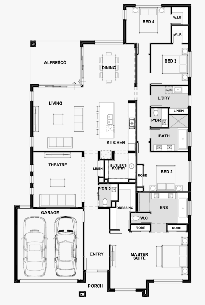 Practicality meets style in the beautiful Amalfi - a stunning single-storey design that packs a punch when it comes to clever use of space. With four generously sized bedrooms - including a master suite positioned at the front of the home - a spacious alfresco and a dedicated theatre room, it caters to every need.