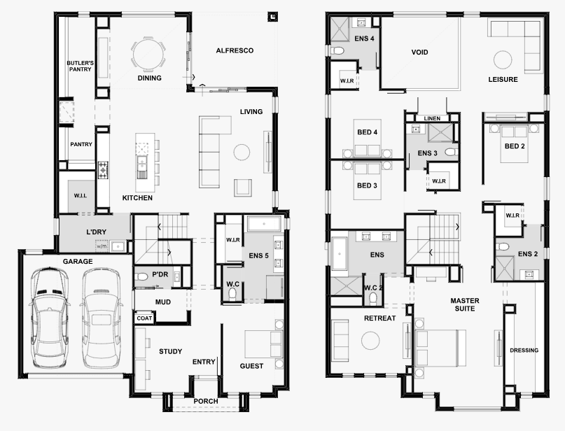 You'll love the sophisticated double-storey Athena design with its stunning feature void. An impressive butler's pantry runs the length of the kitchen providing plenty of storage. On the upper level, your master suite has a private living space so you can unwind after a long day, while the ground floor guest suite is perfect if you have multiple generations under one roof.