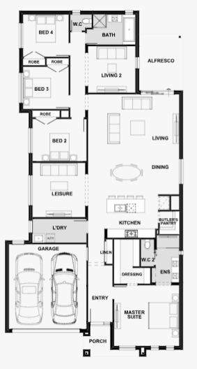 Looking for a home with serious space in a clever single-storey design? With a generous master suite and dressing room, three separate living spaces and rear-positioned bathroom – ideal for privacy and flow - the delightful Kensington could be the answer. The secondary bedrooms all feature built-in storage while a handy butler's pantry provides extra kitchen storage.