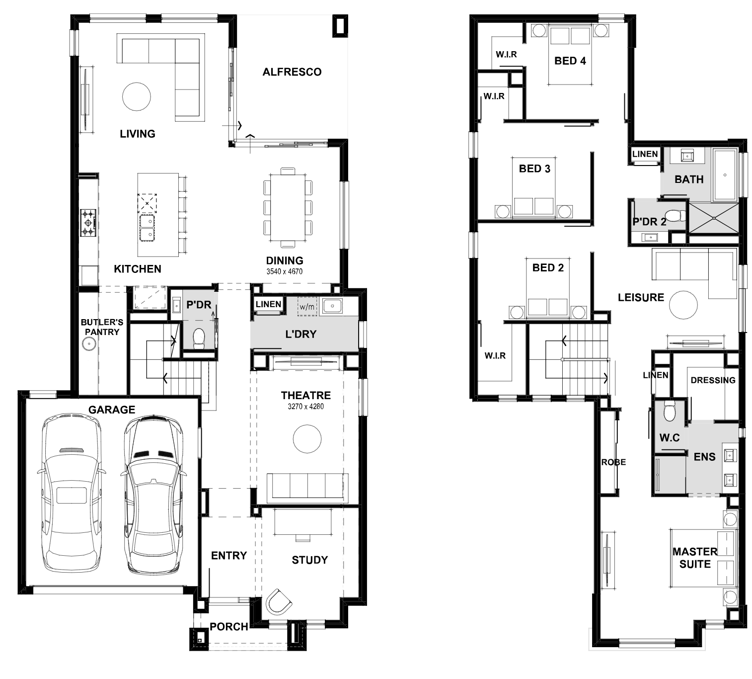 The Palace is an impressive double storey home with five living areas and features up to five bedrooms, making this the only design to do so.