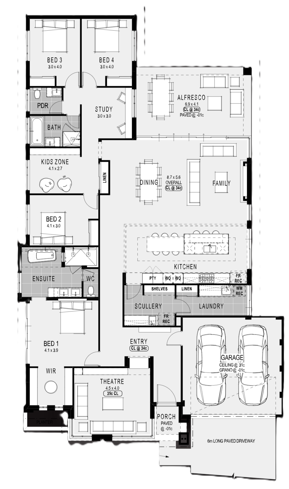 Boasting four spacious bedrooms and two beautifully appointed bathrooms, it offers ample space for the whole family to unwind and recharge. What truly sets 'The Prescott Platinum' apart is its thoughtful design features, including a dedicated kids zone and study area, ensuring every member of the family has their own sanctuary to retreat to.