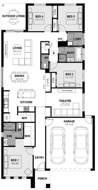 The Harvey also includes a dedicated second living area with flexibility to cater for a home theatre or study, whilst the outdoor living provides an abundance of natural light, bringing you versatility for a smooth and functional flowing home from start to finish.
