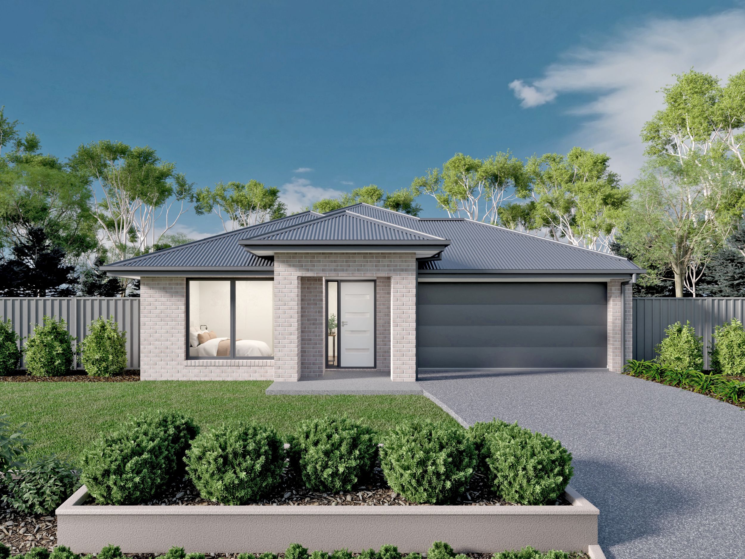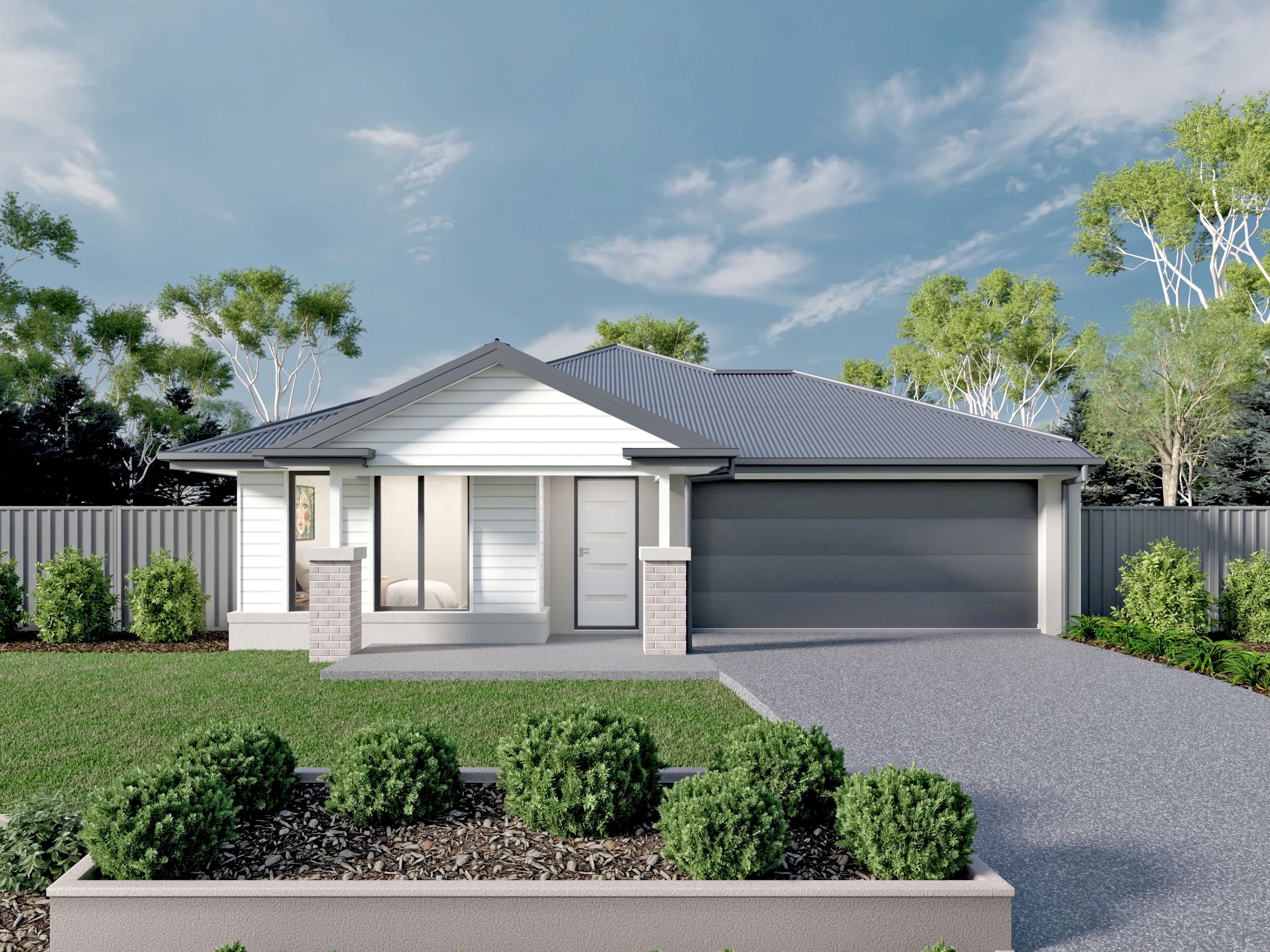 *Price excludes upgrade items above standard specification such as feature render and bricks, front entrance timber decking, front entry door, brick infills above garage, external lighting, fencing, concrete paths and driveway. Facade Image may also contain items not supplied by Metricon, namely landscaping and planter boxes.