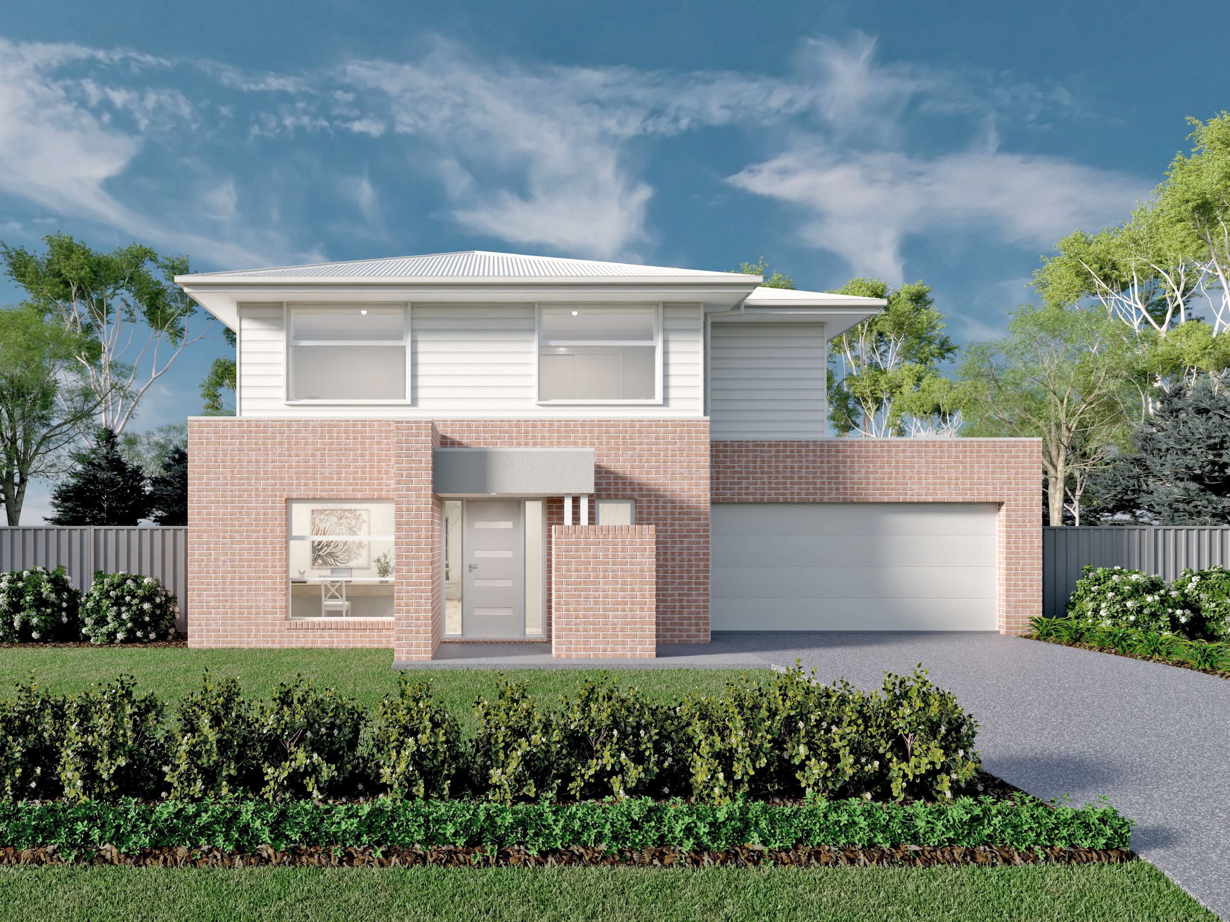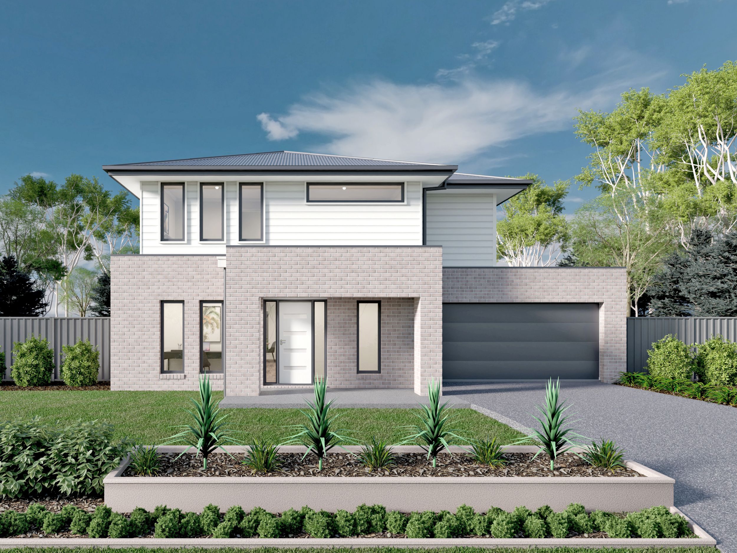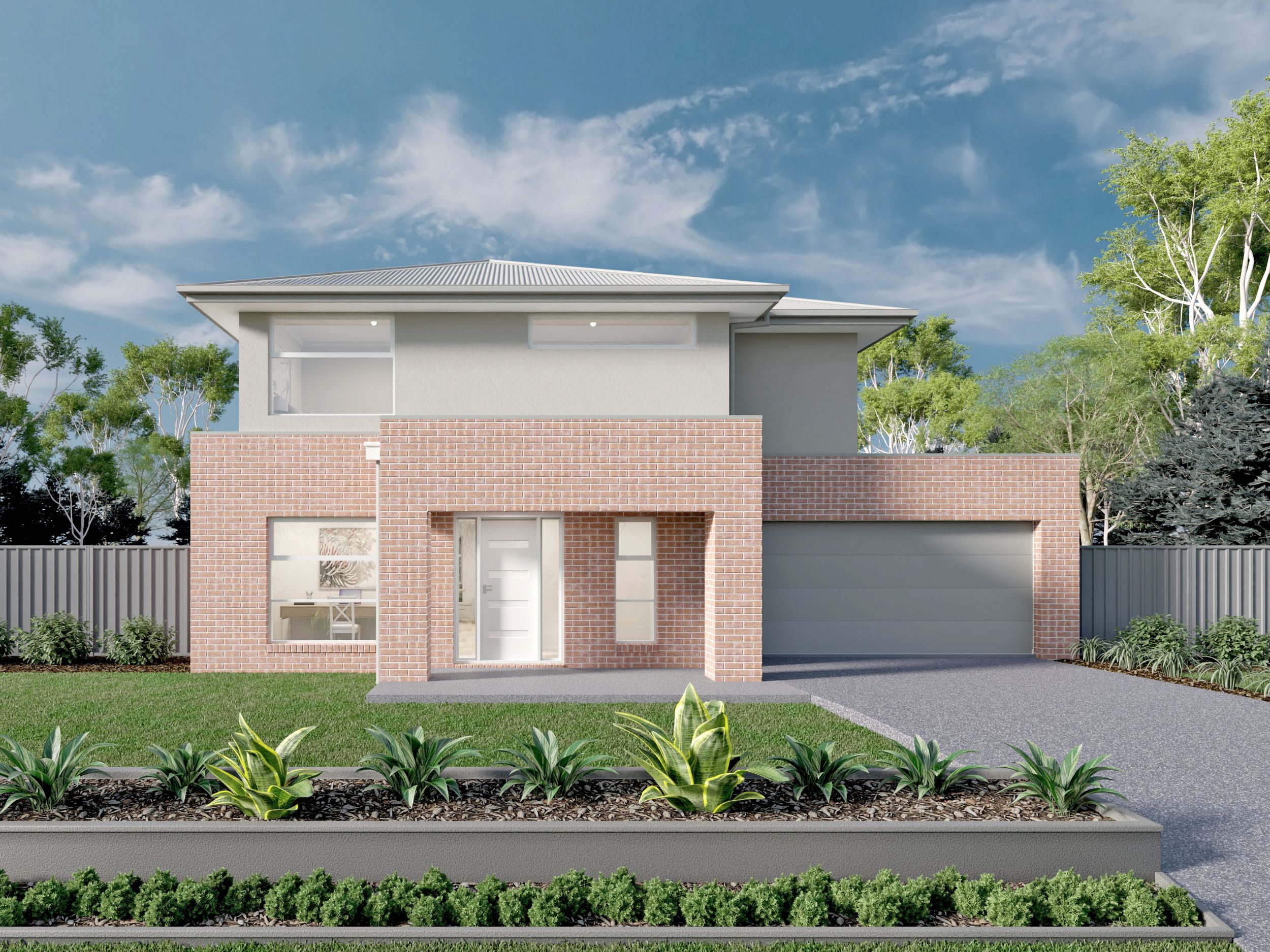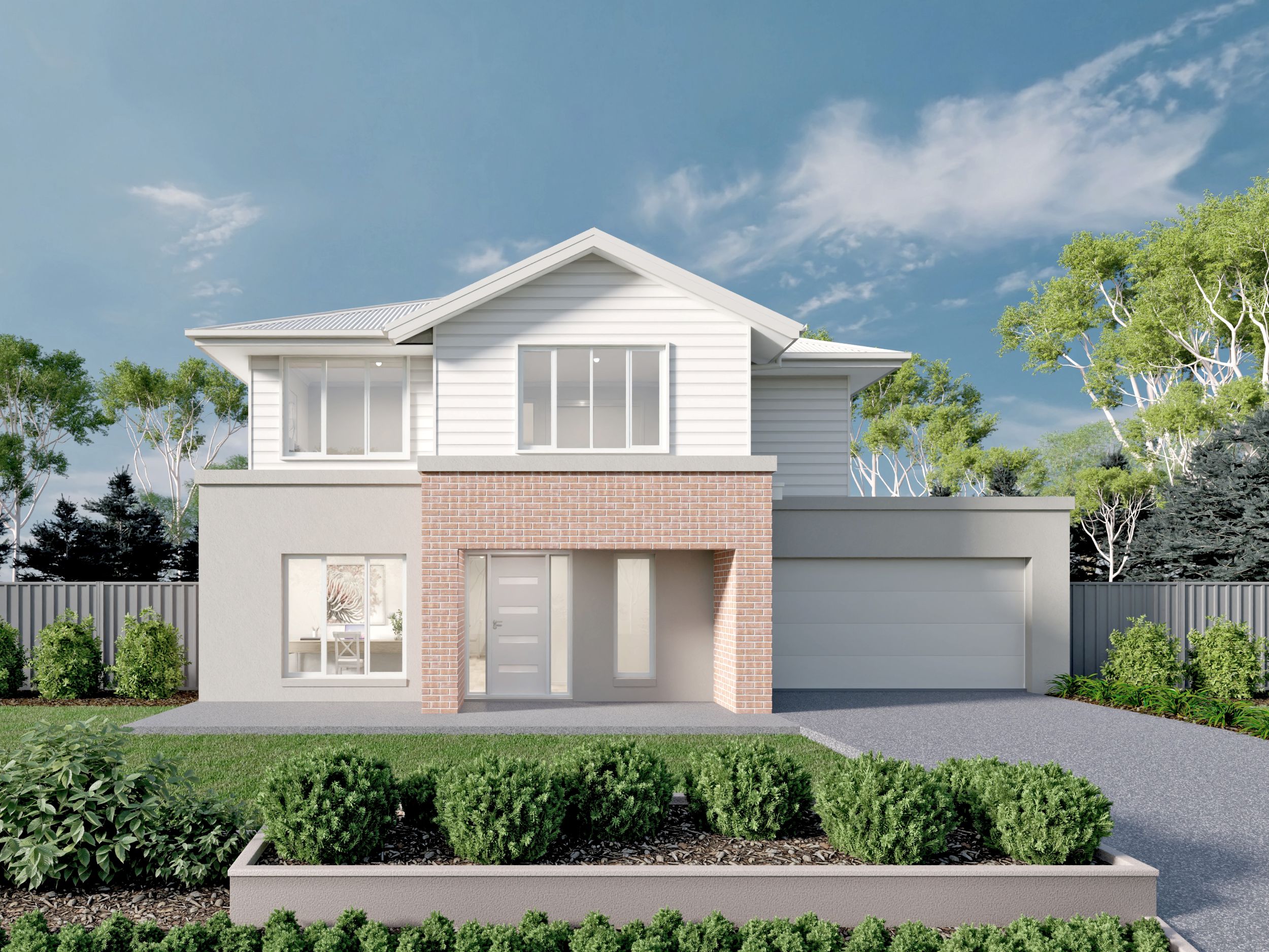 *Price excludes upgrade items above standard specification such as feature render and bricks, front entrance timber decking, front entry door, brick infills above garage, external lighting, fencing, concrete paths and driveway. Facade Image may also contain items not supplied by Metricon, namely landscaping and planter boxes.