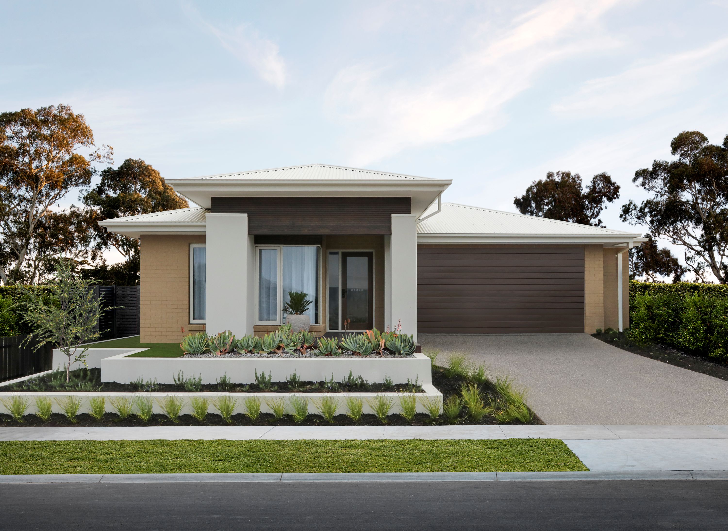 *Price excludes upgrade items above standard specification such as feature render and bricks, front entrance timber decking, front entry door, brick infills above garage, external lighting, fencing, concrete paths and driveway. Facade Image may also contain items not supplied by Metricon, namely landscaping and planter boxes.