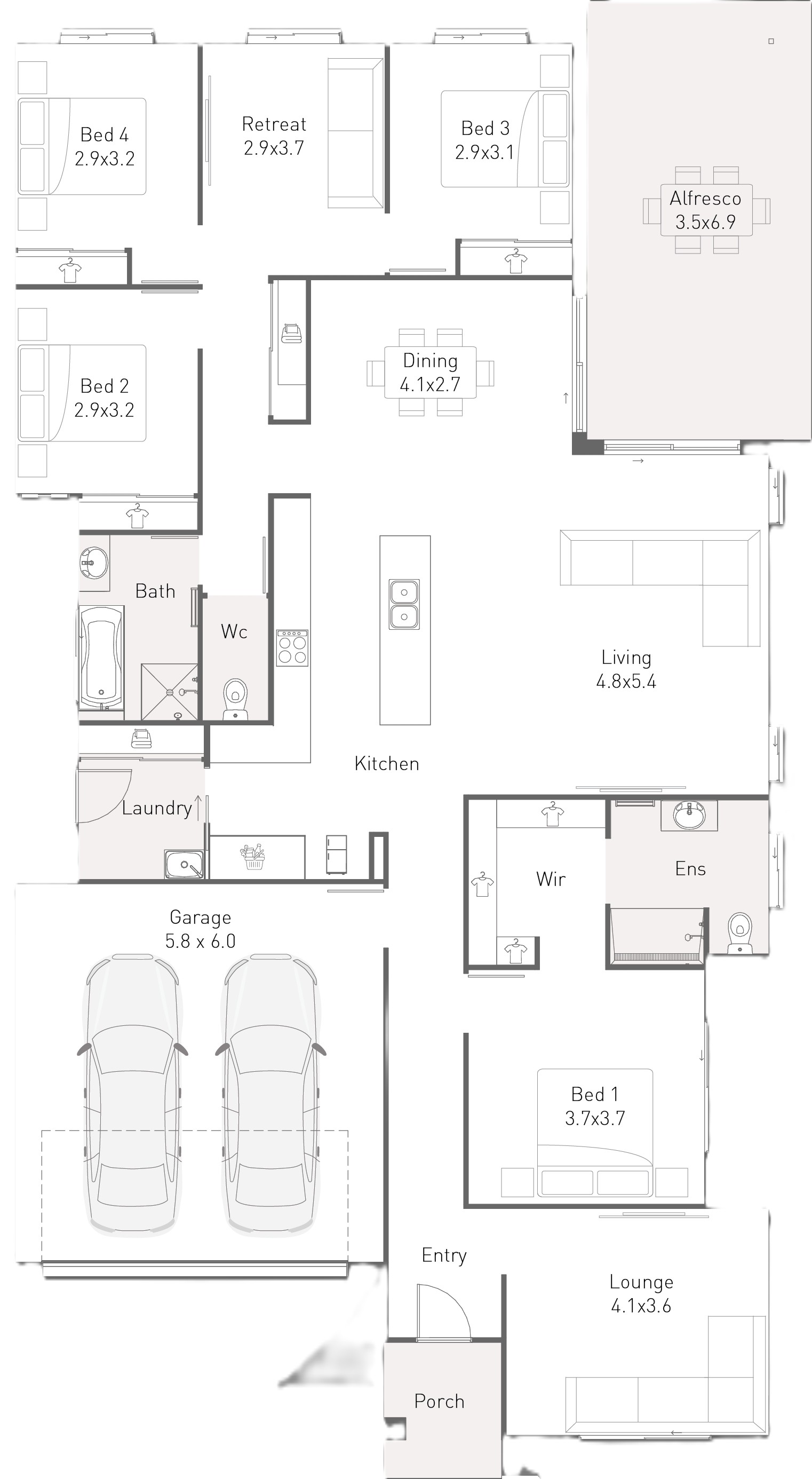 A Coastal Hamptons inspired home filled with luxury features and finishes both inside and out make the Lily 248 make everyday feel like a holiday. Featuring 4 bedrooms, separate media room, kid’s retreat, and generous open plan living creates the perfect layout for families at all stages of life. With style and functionality at the forefront of design, the Lily 248 captures the essence of a stunning Queensland lifestyle, blending indoors and outdoors seamlessly. And it wouldn’t be Queensland without a sparkling inground pool, and this one is sure to impress.