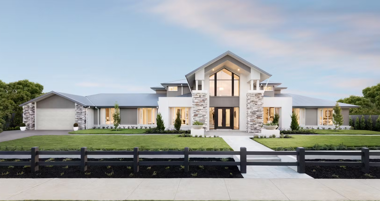 *Price excludes upgrade items above standard specification such as feature render and bricks, front entrance timber decking, front entry door, brick infills above garage, external lighting, fencing, concrete paths and driveway. Facade Image may also contain items not supplied by Metricon, namely landscaping and planter boxes. Aluminium double glazed windows are subject to specific home design, refer to plans.