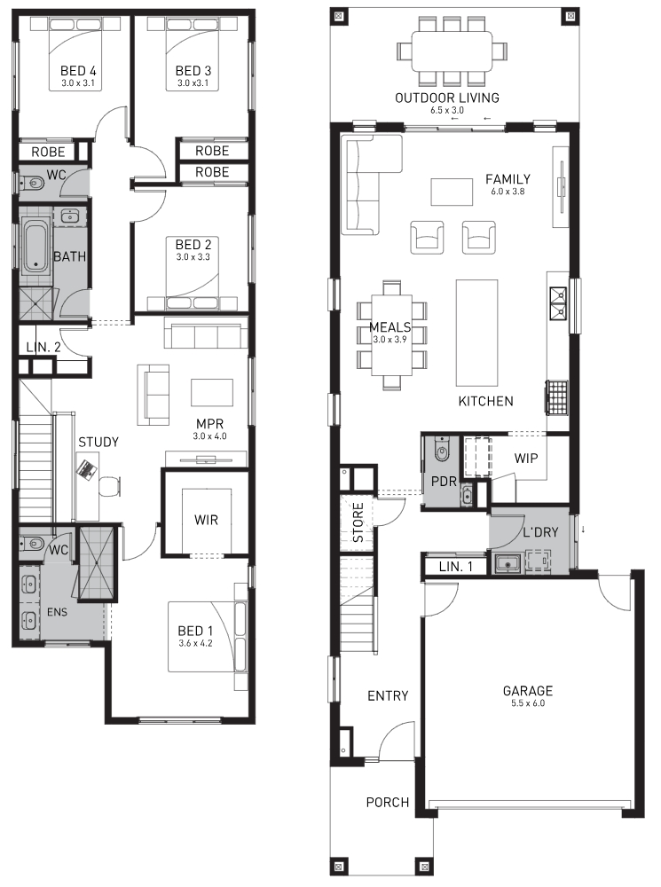 Designed to fit on a 10 metre wide by 30 metre deep block, the Galleria 262 has four bedrooms, including a master bedroom with ensuite and walk in robe, all located upstairs. There is also a well sized study space by the stairs, ideal for children to focus while studying or completing homework.
