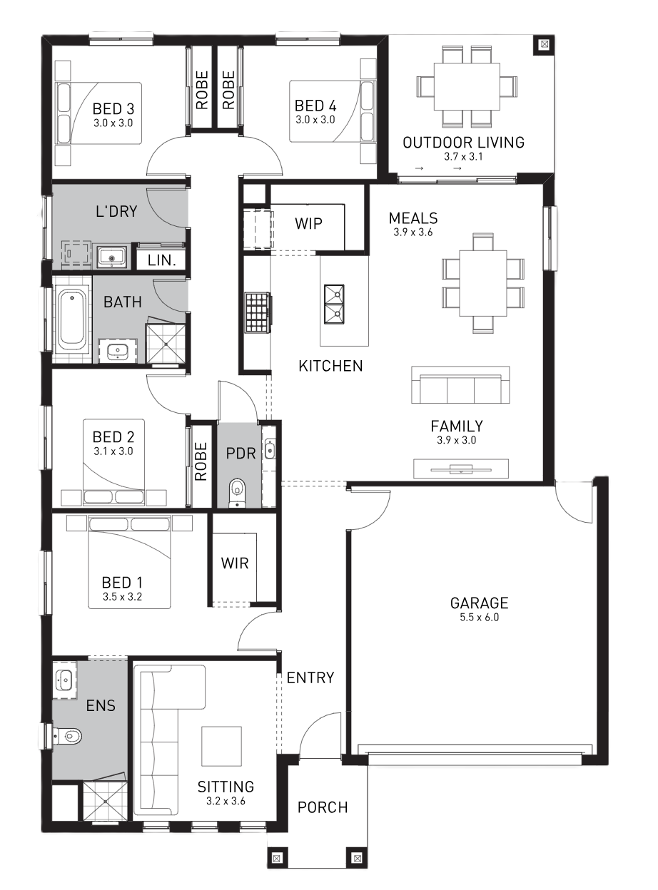 This clever layout features a large and versatile open plan meals, kitchen and entertainment zone allowing plenty of room to be customised for your family’s needs. This light and breezy open plan area seamlessly connects to the outdoor alfresco via sliding doors that flood the space with natural light.