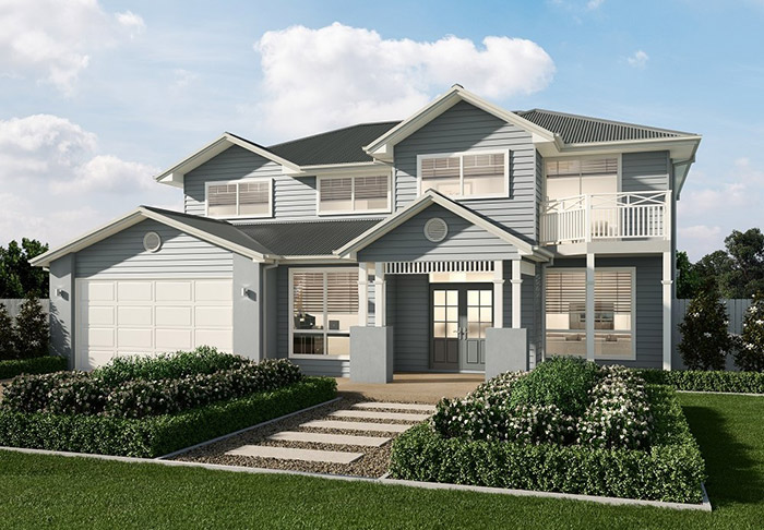 With classic street appeal, our Hampton East double storey home features design elements reminiscent of the elegant Coastal vibes found in homes along the beaches of Long Island, New York.