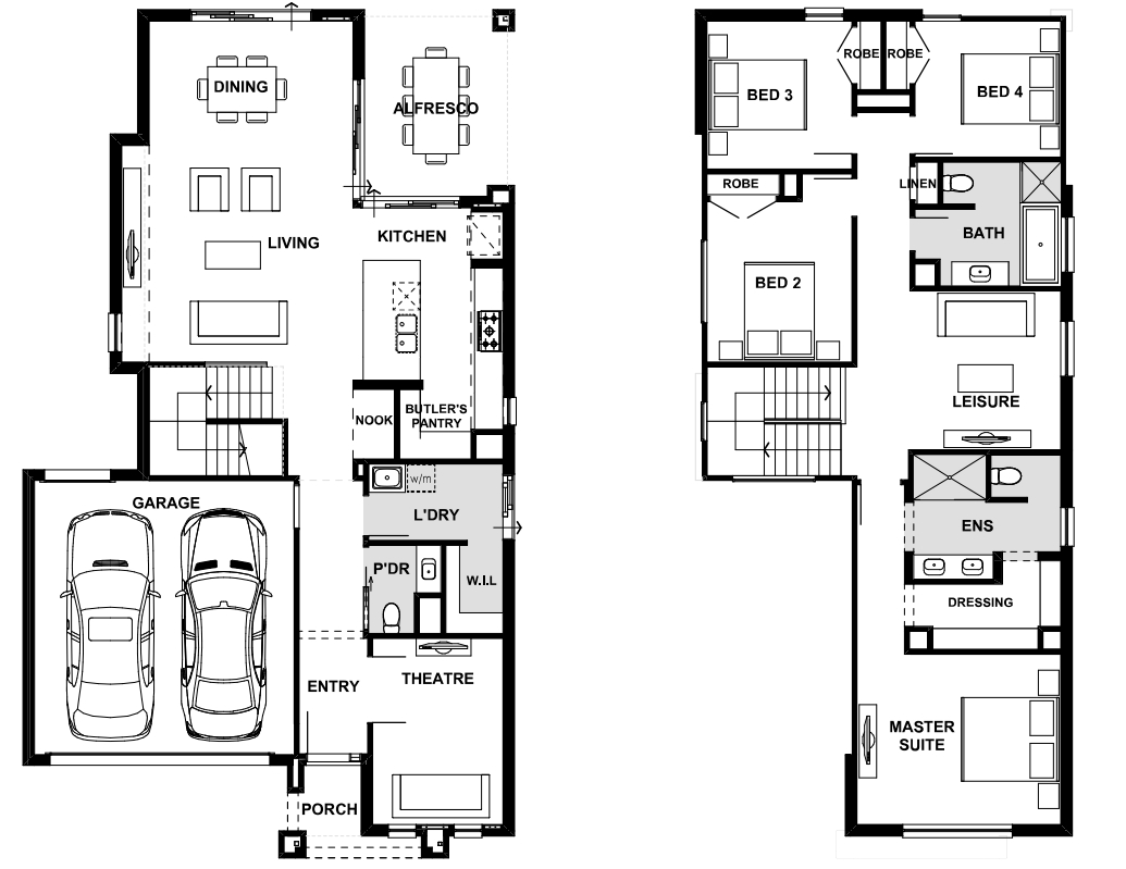 Whether you’re hosting friends for a Sunday lunch or hanging out with the family around the house, the Alpine has been designed to deliver more Queensland lifestyle, everyday. The ground floor hosts spacious open plan entertainment zones, with a feature staircase serving as a gateway to your private retreat. Upstairs is an additional leisure area and four bedrooms, including your master suite with an ensuite and dressing room.