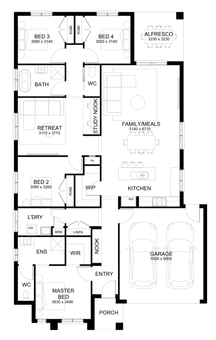 Embrace the comfort and practicality of the Fairfield, a charming design with ample room for relaxation and entertainment. The key features of this home include a master bedroom conveniently situated at the front of the home and a relaxing retreat space that can be utilised as a second living area. In the heart of this home is an open plan living area, perfect for connecting the family.