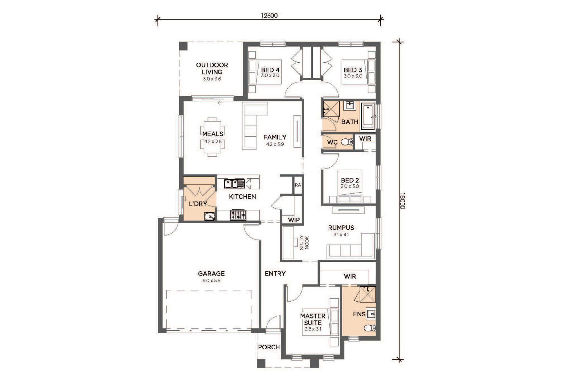Introducing the Capri, a part of the Haven by SJD Homes range – a thoughtfully designed 4 bedroom, 2 bathroom home perfect for first-time buyers and investors. This plan includes two spacious living areas, a study nook ideal for working from home, and a double car garage. The Capri offers a blend of comfort and functionality, making it an excellent choice for modern families.