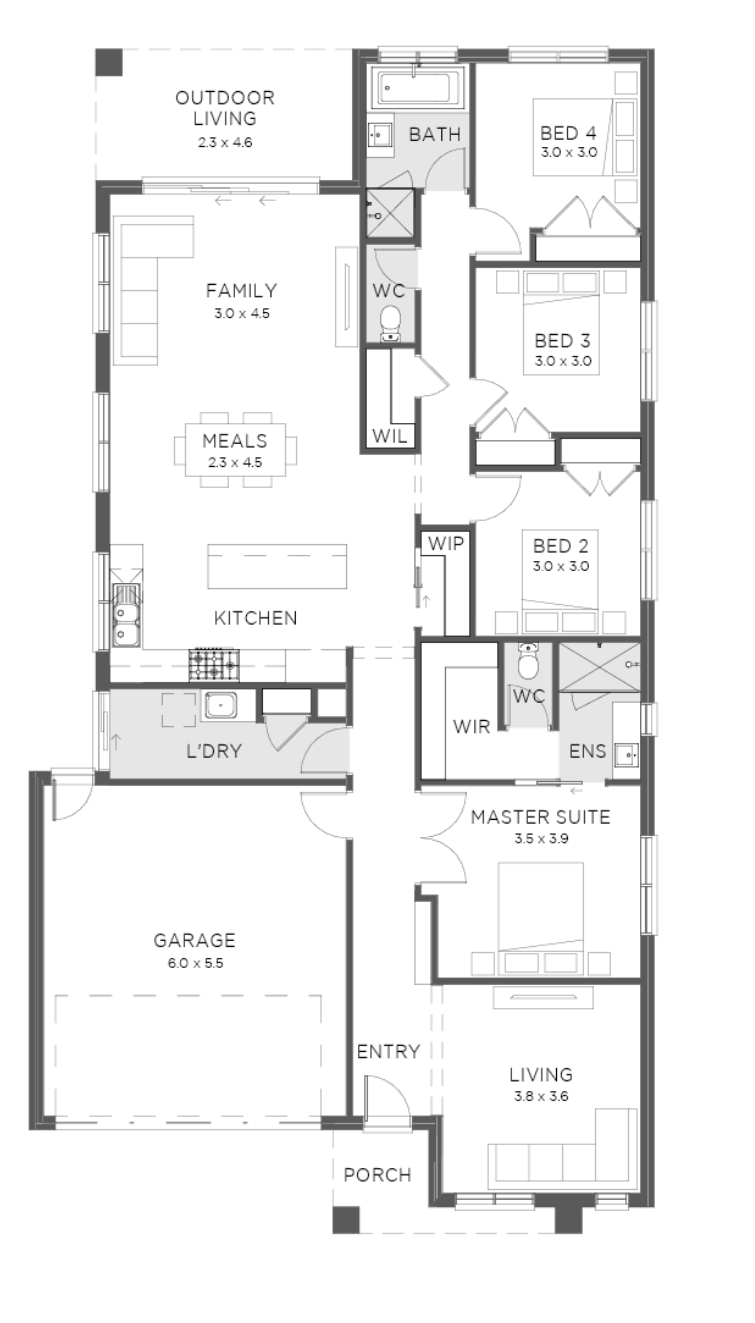 The Hotham provides all the modern day ‘wants’ and ‘needs’ in one home. Designed to include four bedrooms, two living areas, and a two car garage as a bare minimum, the Hotham’s smart use of space will make you feel right at home.