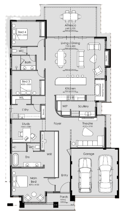 From the moment you enter, the volume of 33 course ceilings sets a sophisticated tone, creating a feeling of openness that carries throughout the home. At its centre, a striking light filled foyer welcomes you in. A softly curved feature wall not only defines the flow of the space but introduces the subtle architectural detail that sets the Celeste apart.