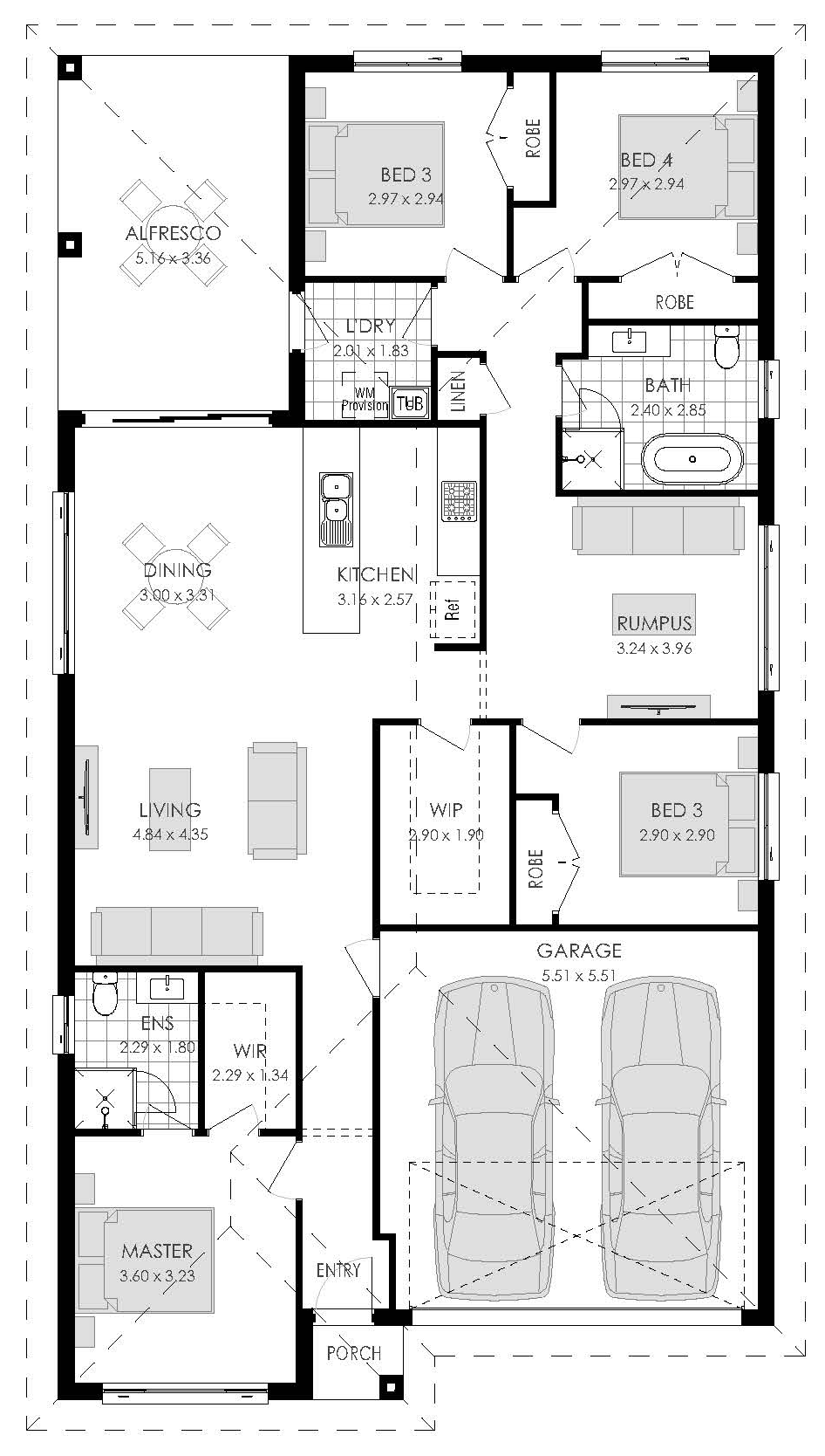 This contemporary family home offers a spacious open-plan layout featuring a central kitchen with walk-in pantry, flowing seamlessly to the living, dining and alfresco areas. Four bedrooms, including a private master suite with walk-in robe and ensuite, ensure comfort for all. A separate rumpus room, well-placed laundry, ample storage and a double garage complete this functional, family-friendly design.