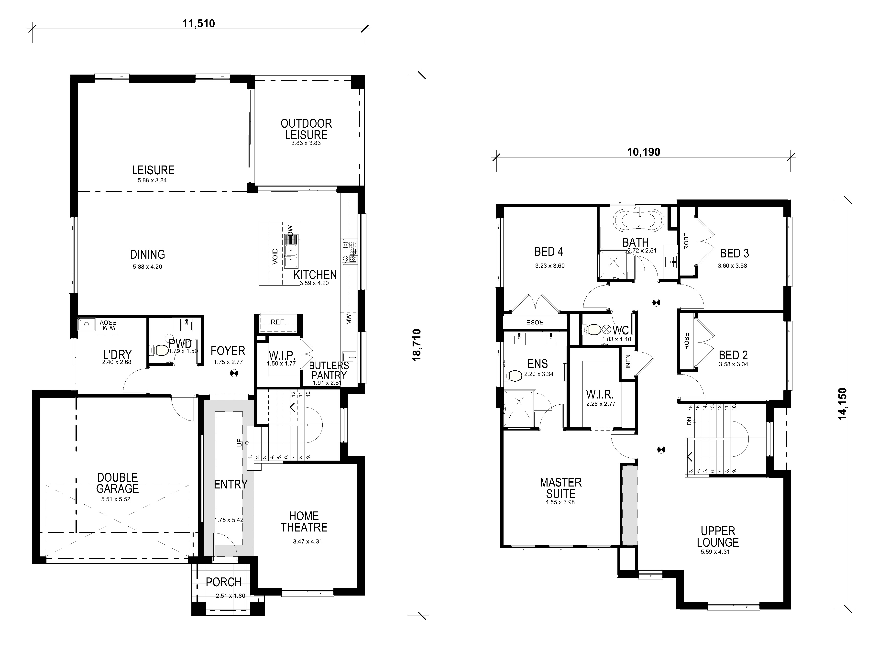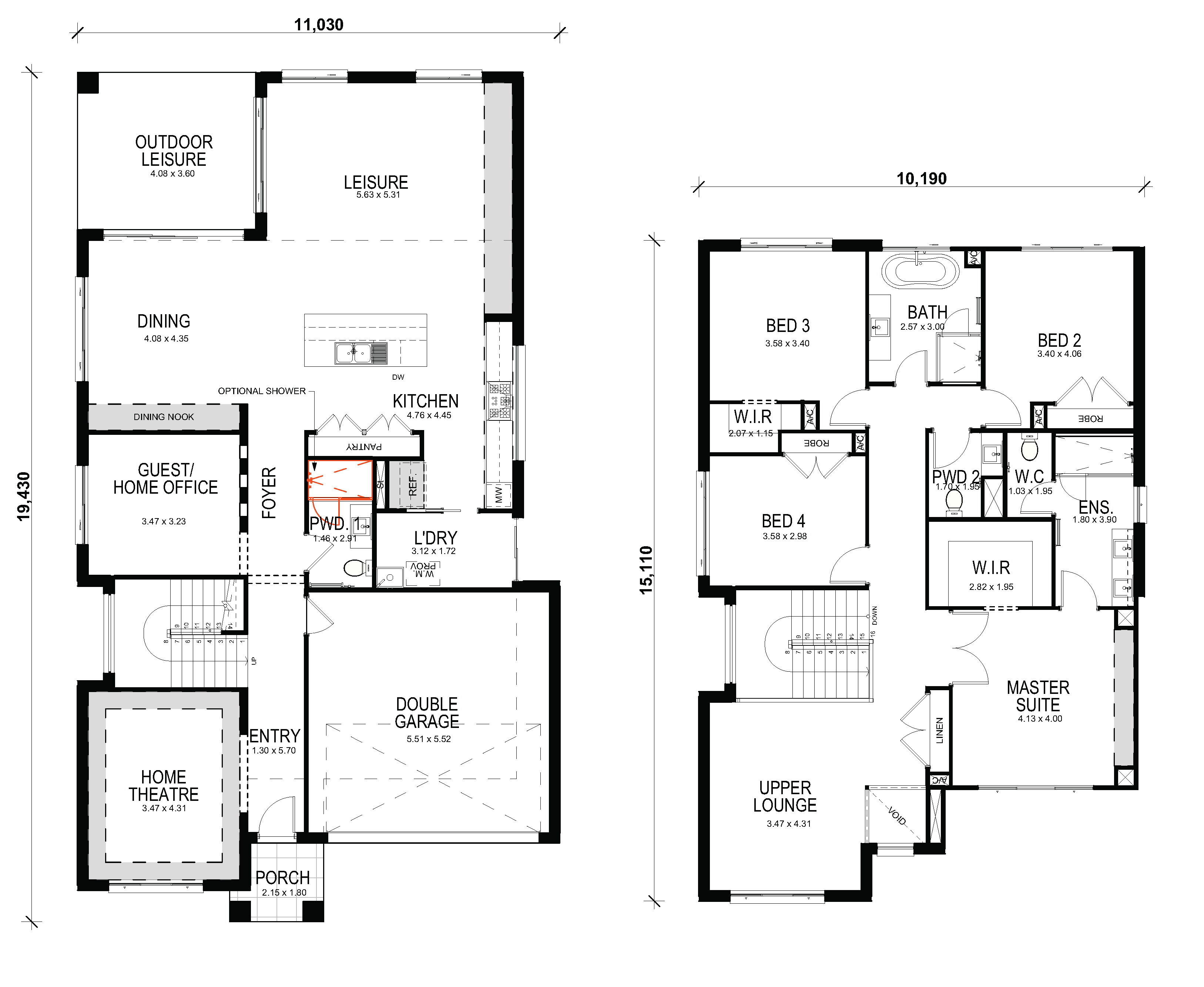 Informal living takes centre stage downstairs with the polished contemporary kitchen, including a fantastic walk-in pantry, opening onto the relaxed leisure and dining area. Seamless access to the covered outdoor leisure space makes year-round outside dining a pleasure. The Aspiration 35 & 36 also benefit from the further downstairs guest bedroom, or home office for quiet study. A downstairs powder room and laundry add to the practicality.